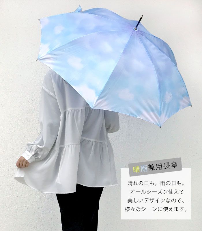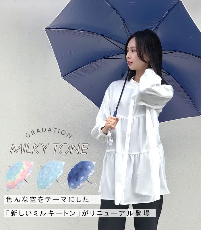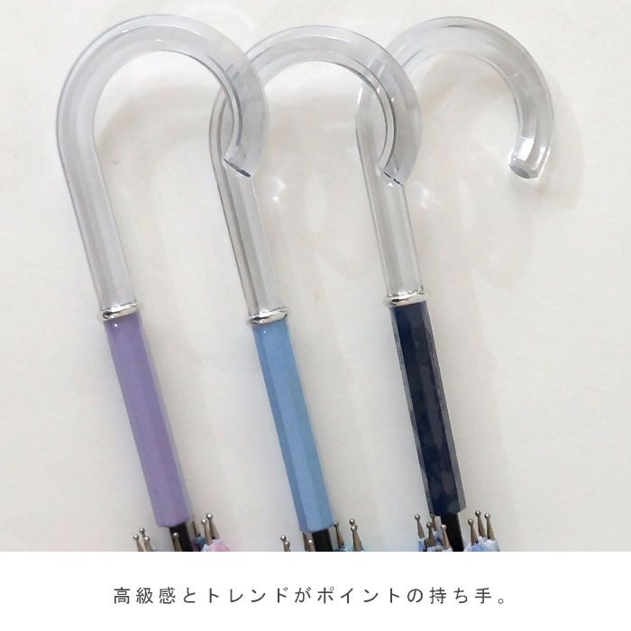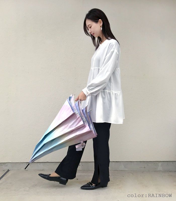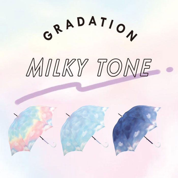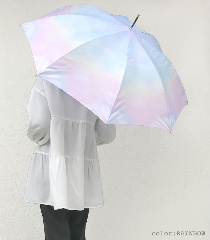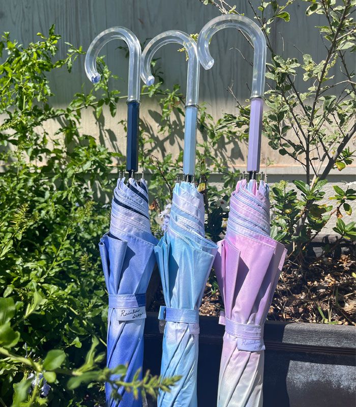 可愛らしいグラデーションが目を引く晴雨兼用傘。 超撥水加工とUV加工を施し、機能性を追求。 グラスファイバー骨仕様で丈夫で軽いのも嬉しいポイント。 持ち手部分は、クリア×リングで可愛らしく♪ お洒落で機能的な傘を持って雨の日も晴の日もお出掛けを楽しもう♪