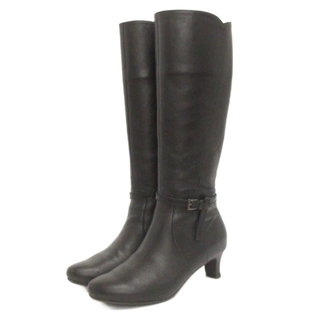 【商品名】ソフィアコレクション SOPHIA collection ロング ブーツ ヒール ラウンドトゥ ベルト レザー 黒 ブラック 23.5㎝ ■FF