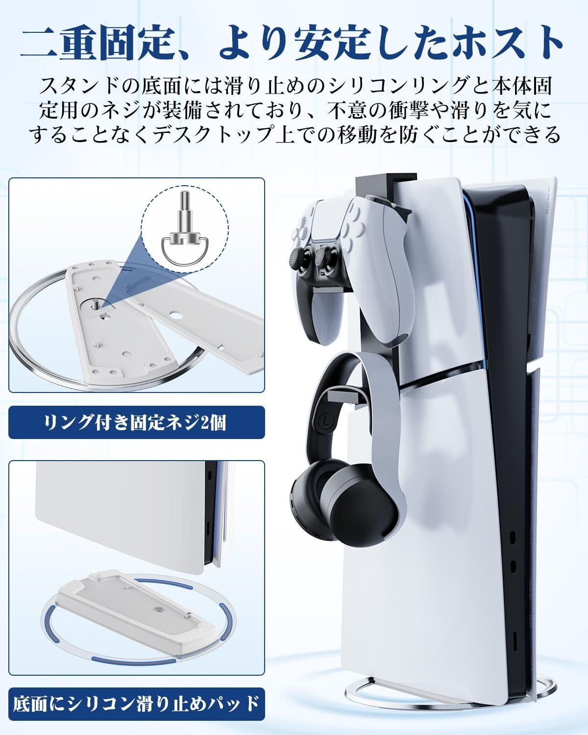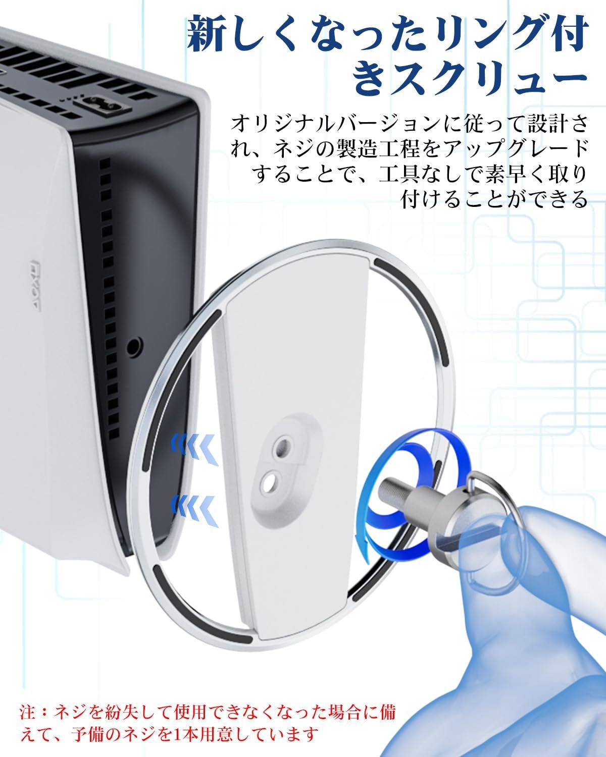 【PS5 Pro/PS5/PS5スリム専用スタンド 】:底面には滑り止めのシリコンリング、本体固定用のネジが付属。 このPS5スリム用スタンドは普通のプラスチック製スタンドを超え、場所を取らないだけでなく、PS5スリムとPS5コンソールをより安定した筐体にし、不慮の衝突や滑りを心配する必要がありません。