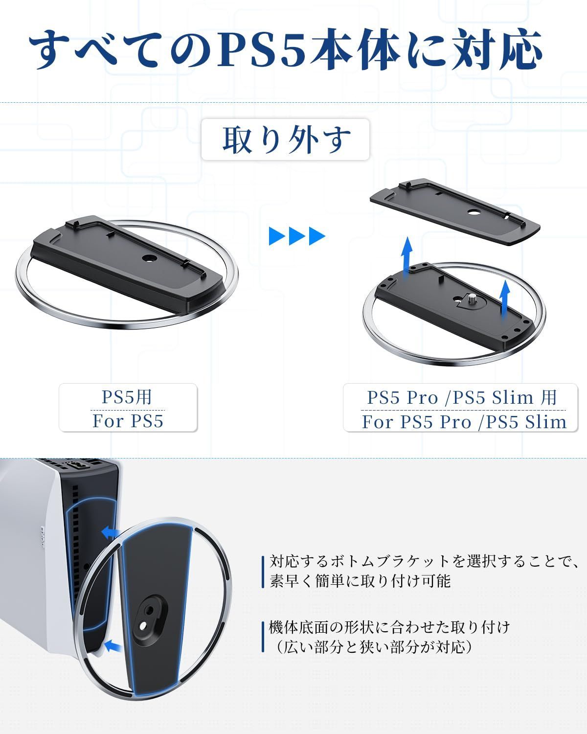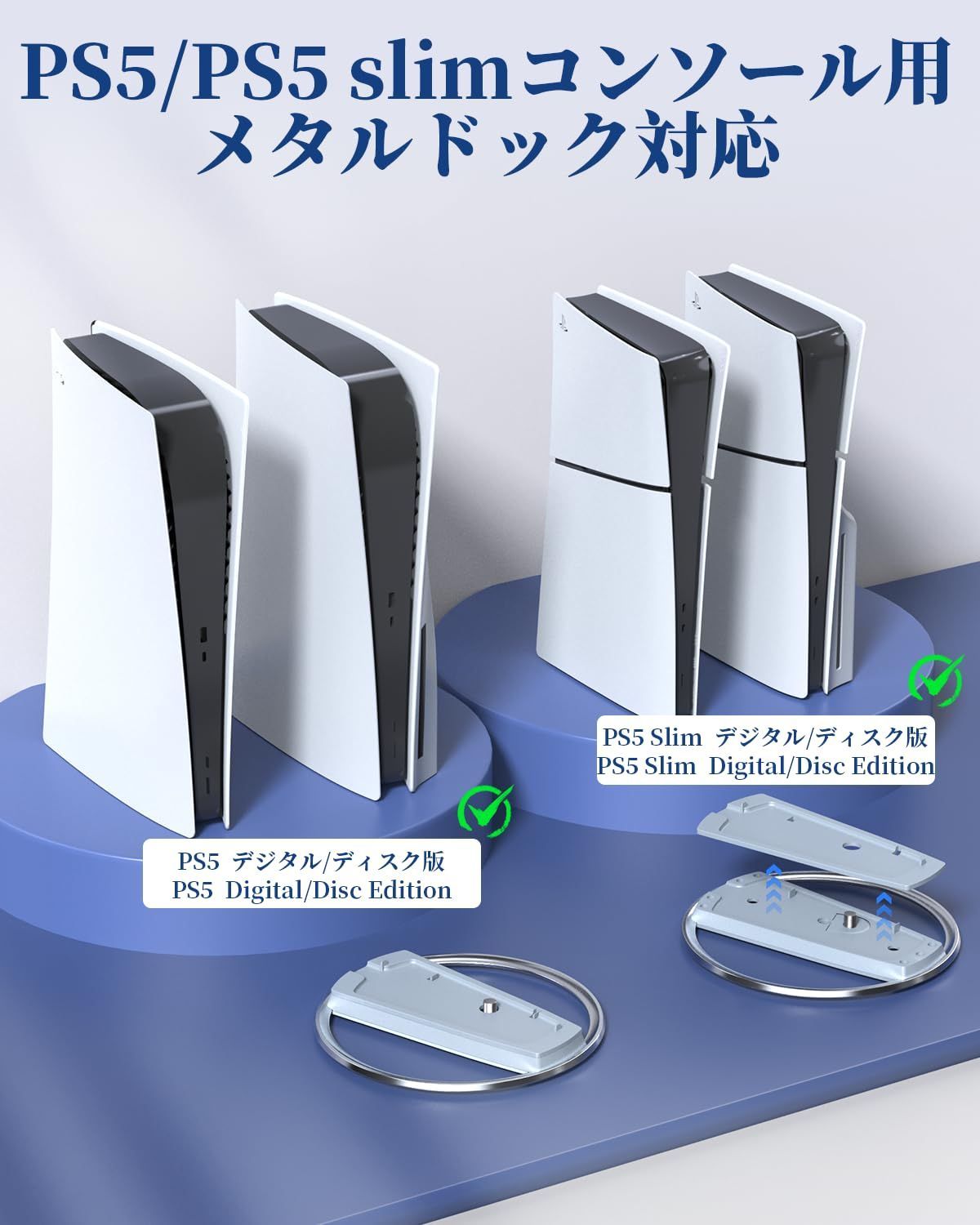【幅広い互換性】:PS5 Pro/PS5 SlimとPS5コンソール(ディスク版とデジタル版)に対応するように慎重に作られた先進的なPS5コンソールスタンドをリリースしました。 重いものを掛けても安定したバランスを保つことができます。注:製品にはメタルベースのみが含まれ、コントローラー、ヘッドセット、紙版のマニュアルは含まれません。