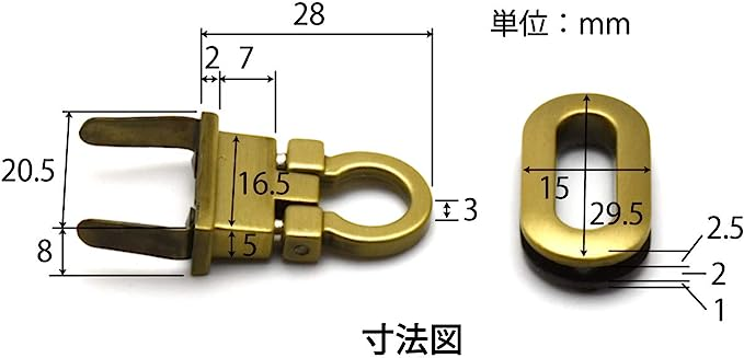 バッグやかばんなどのハンドメイドでご使用いただける、差込み式リング型の留め具5個セットです。