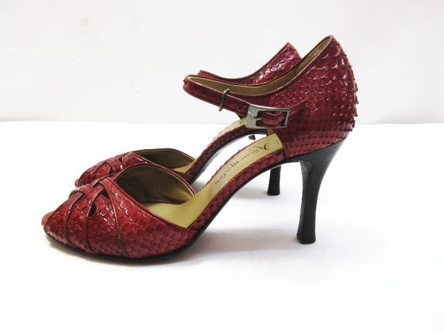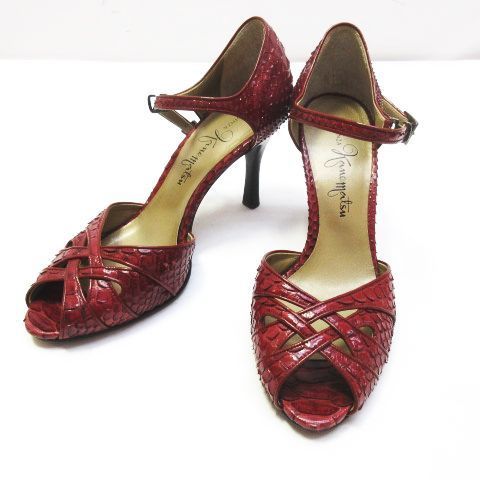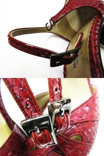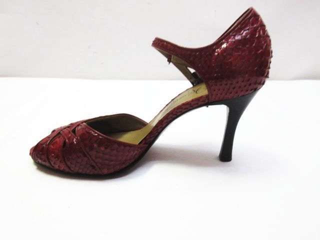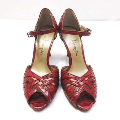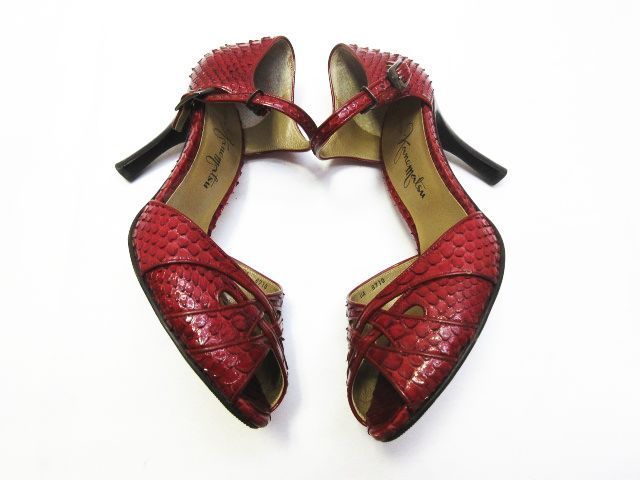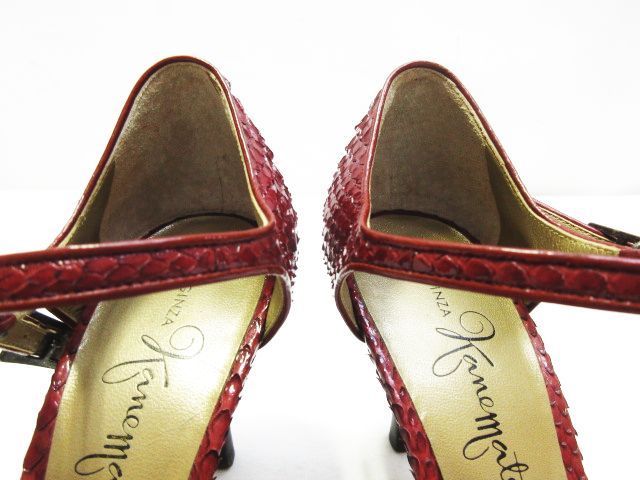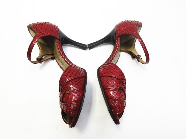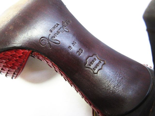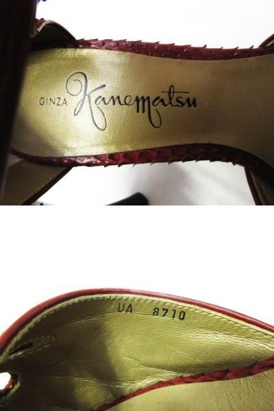 銀座かねまつ リアルパイソン オープンテゥ アンクル サンダル ハイヒール ストラップ