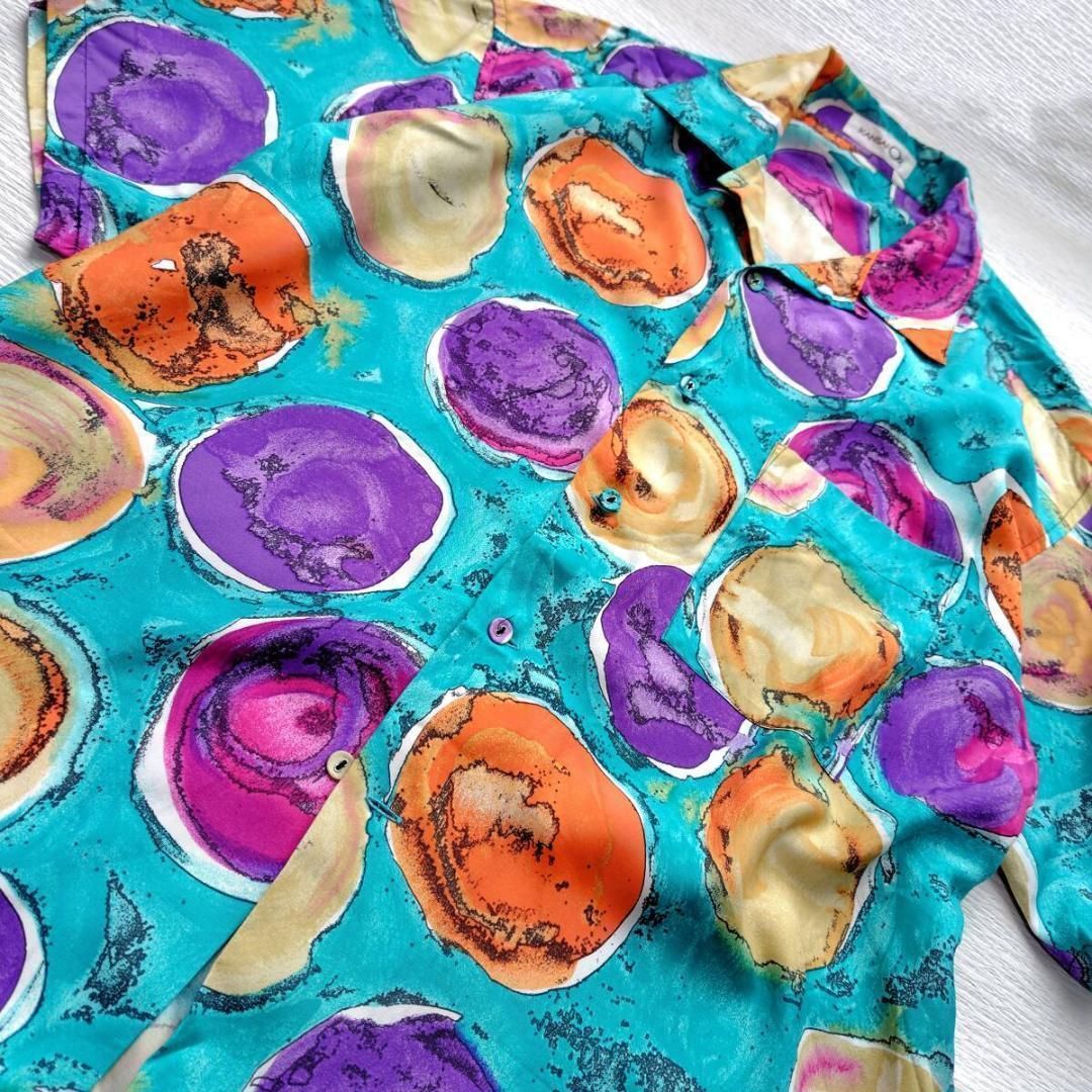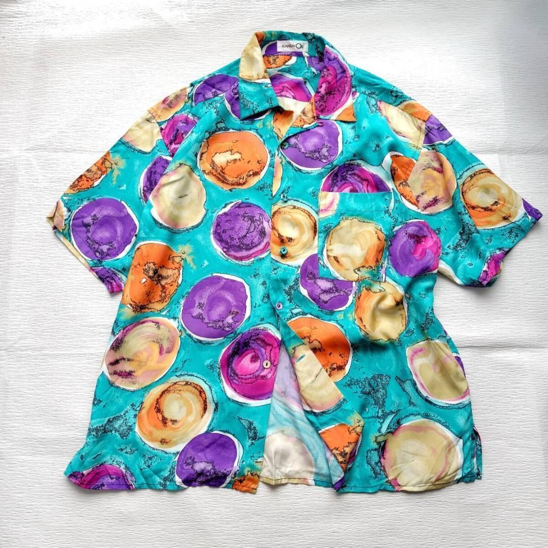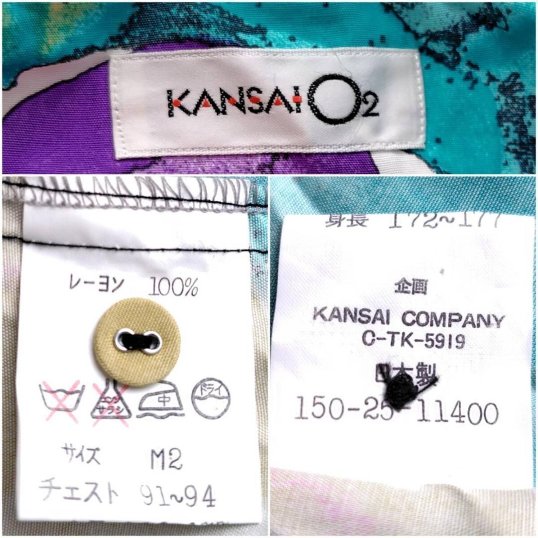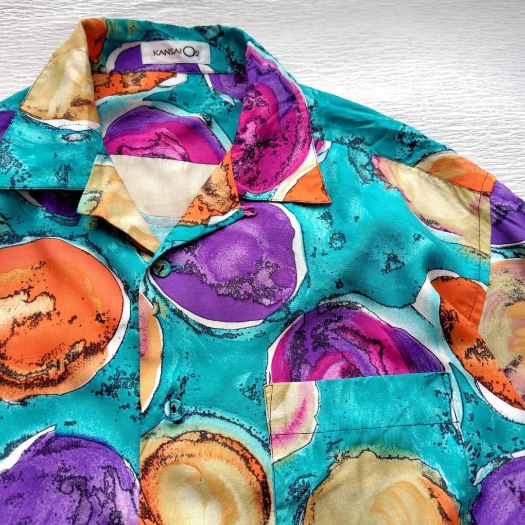 KANSAI O2 ヴィンテージ 半袖シャツ アロハシャツ M L対応 柄シャツ レーヨン 山本寛斎 240609-04