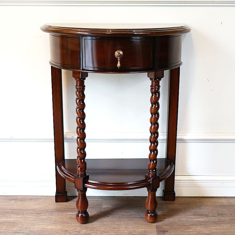 【商品名】コンソールテーブル アンティーク 幅57 半円 マホガニー 木楽館オリジナル家具 ツイスト脚 コンソールテーブル 玄関