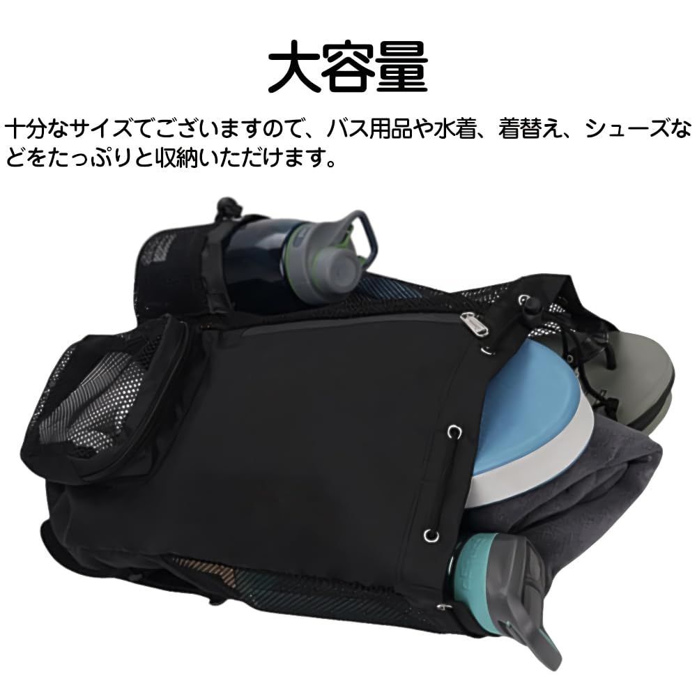 大容量:十分なサイズでございますので、バス用品や水着、着替え、シューズなどをたっぷりと収納いただけます。
