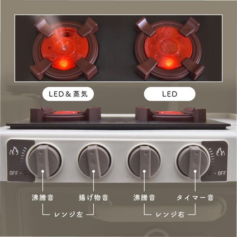 音楽・光り・効果音・蒸気など、あらゆる演出でおままごとを盛り上げます。