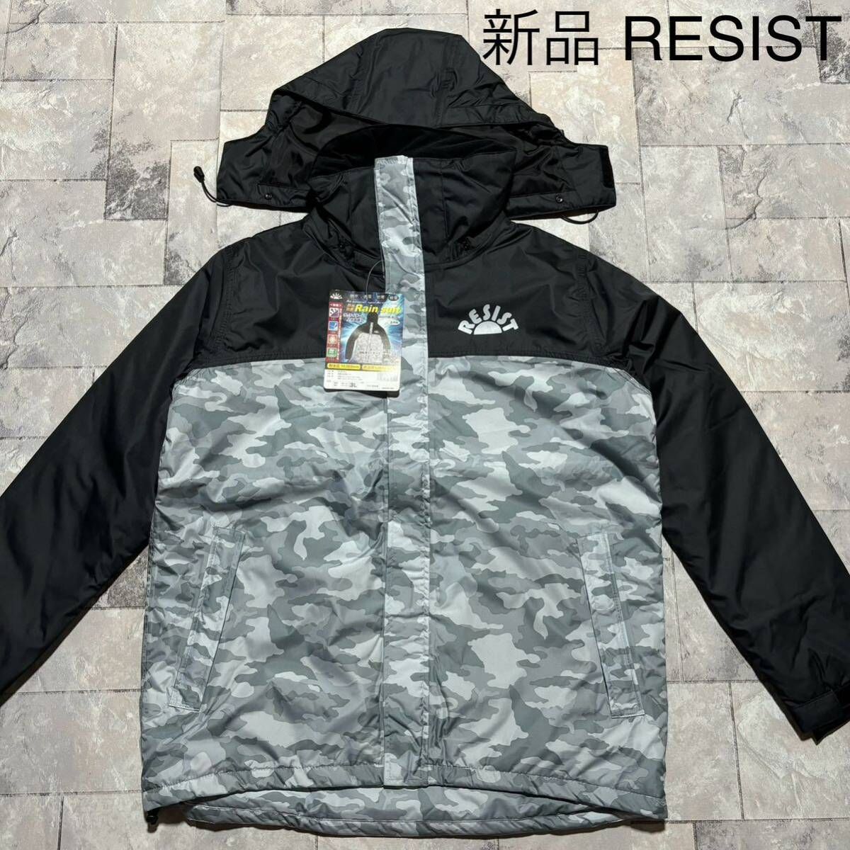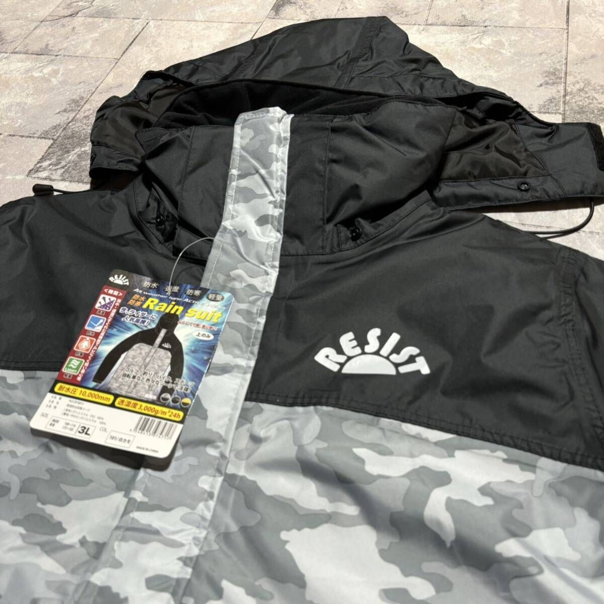 新品 RESIST レインスーツ 中綿ジャケット 透湿 防水 防寒 軽量 フード取り外し可 ゴルフ 釣り 自転車 雨具 カモフラ白 サイズ3L 玉FS1500