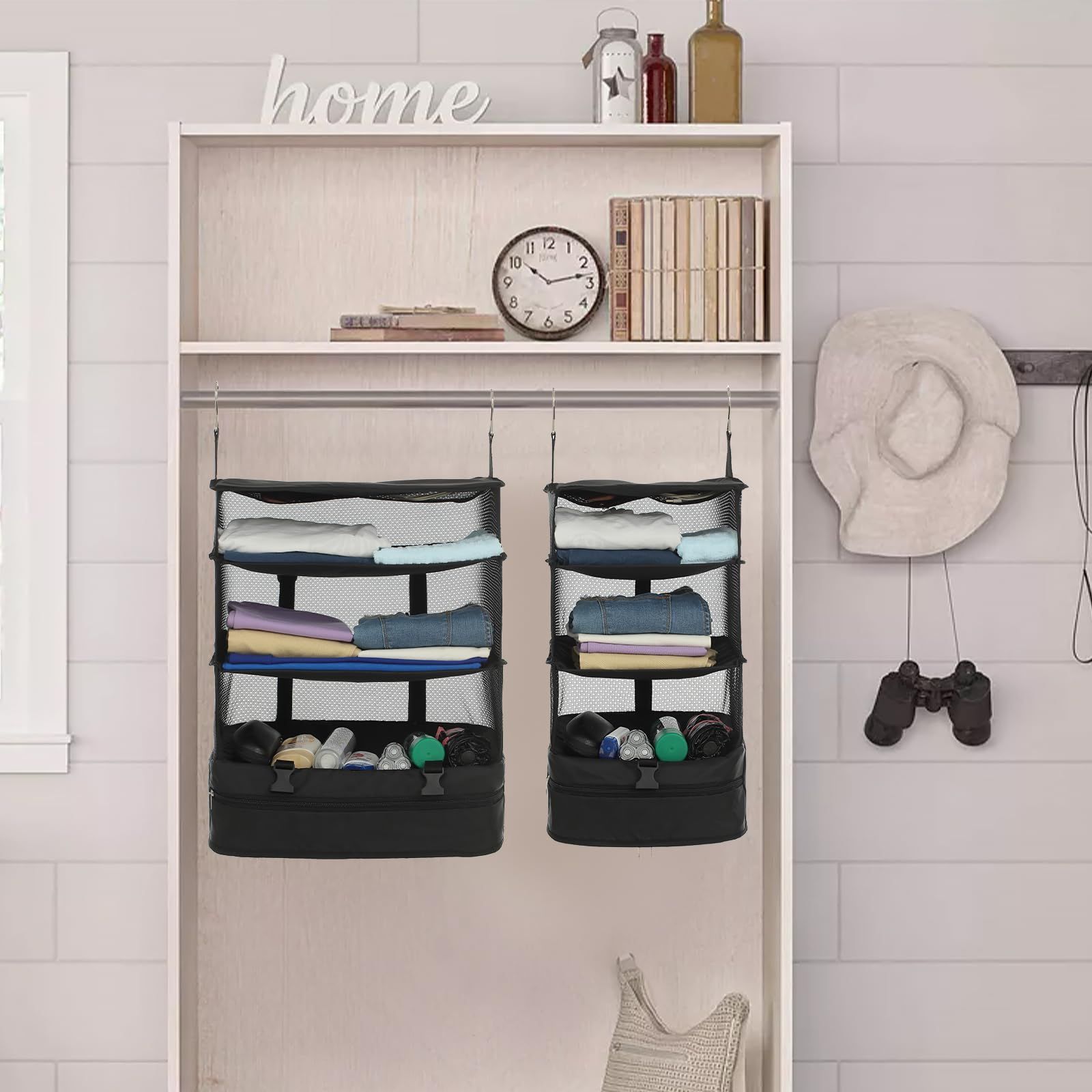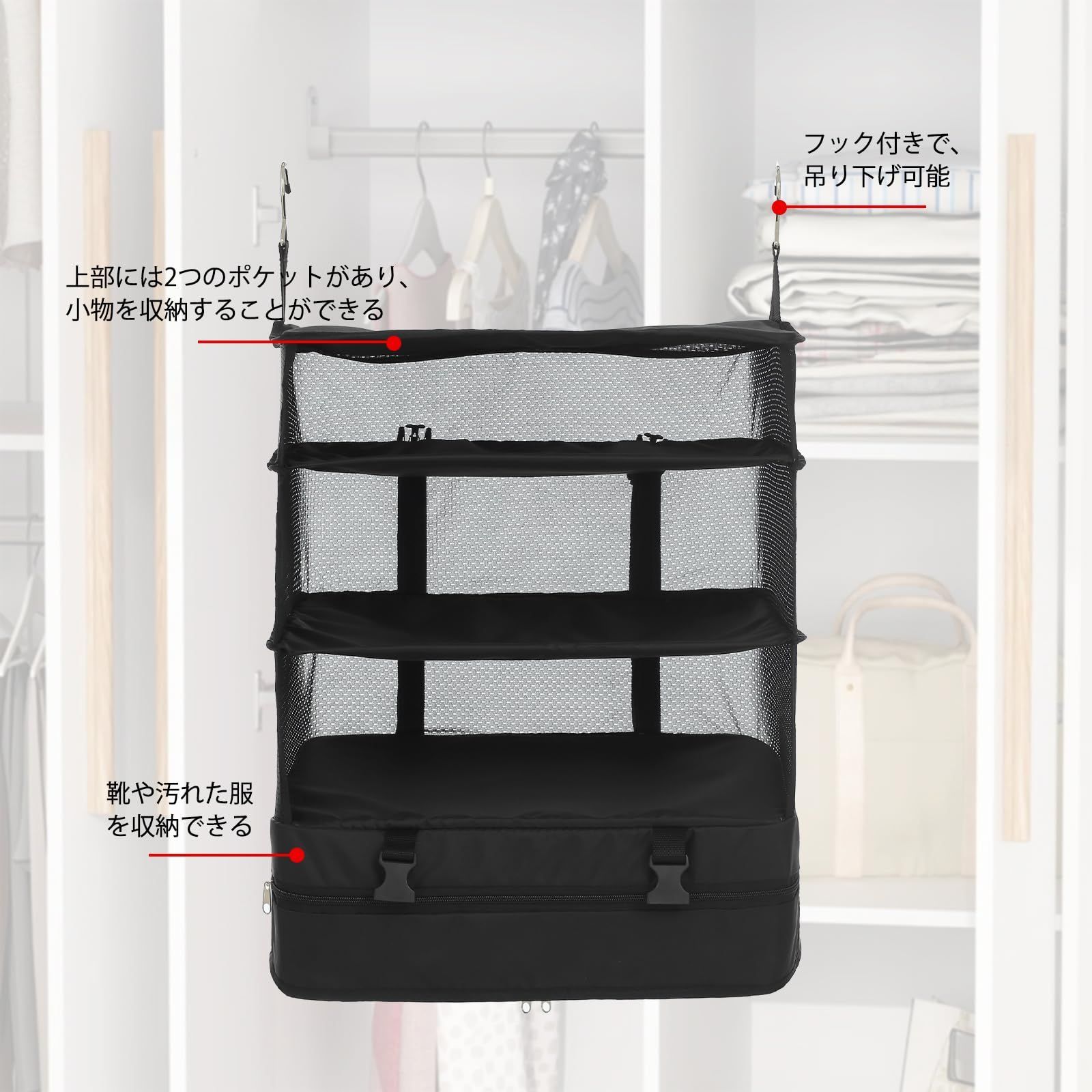 TABITORA(タビトラ) クローゼット吊り下げ収納 インナーバッグ 衣類ラック 収納 旅行 出張 クローゼット 収納ボックス 吊り下げ 省スペース 大容量 衣装ケース 4段 取付簡単 折り畳み式 ブラック XL