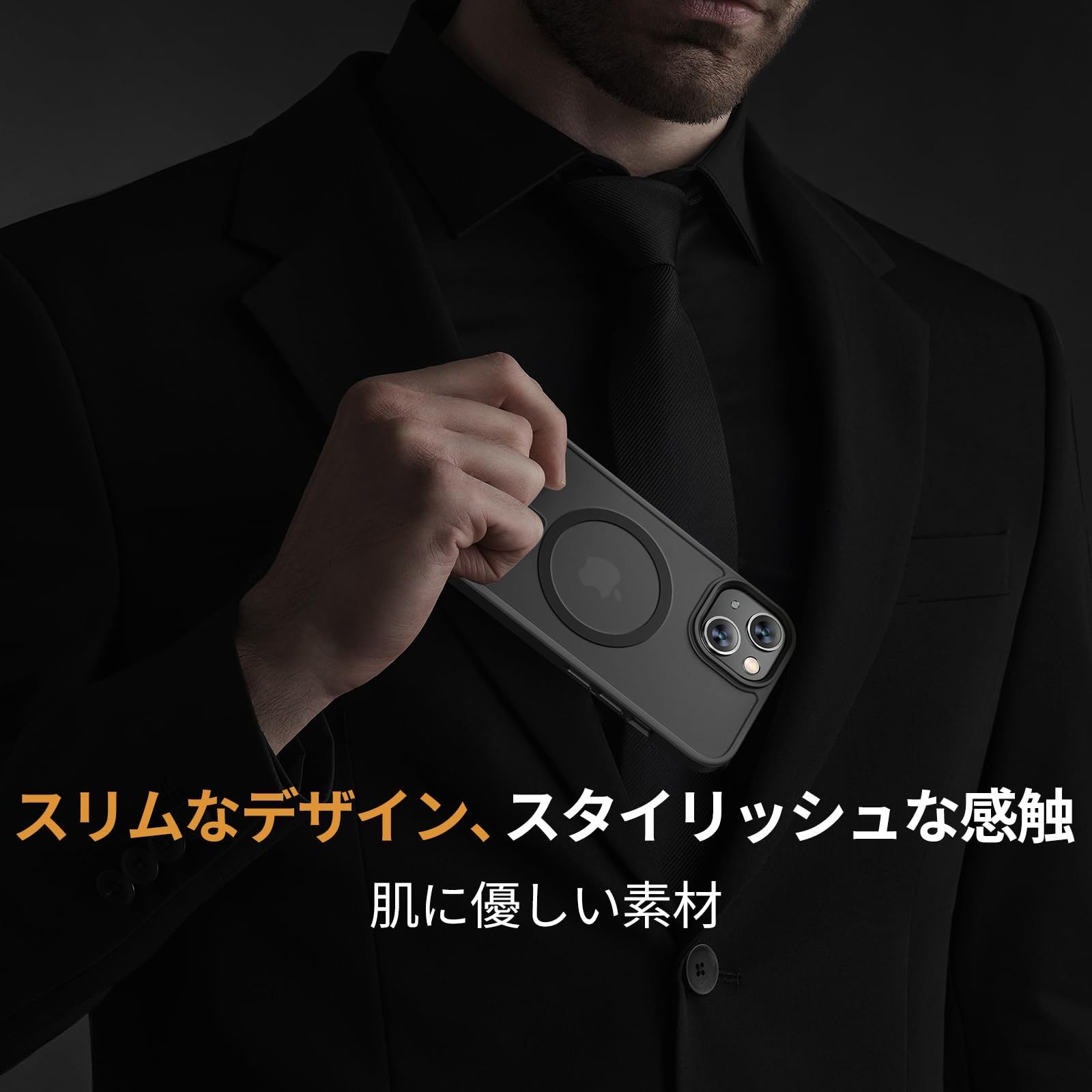 Miracase iPhone13 ケース【Magsafe対応・米軍規格】iPhone13ケース 耐衝撃iphone 13 ケース 6.1インチ、傷防止、黄ばみ防止、指紋防止、ストラップホール付き、薄くて肌に優しいデザイン、金属ボタン、マット、フロスト、半透明、黒