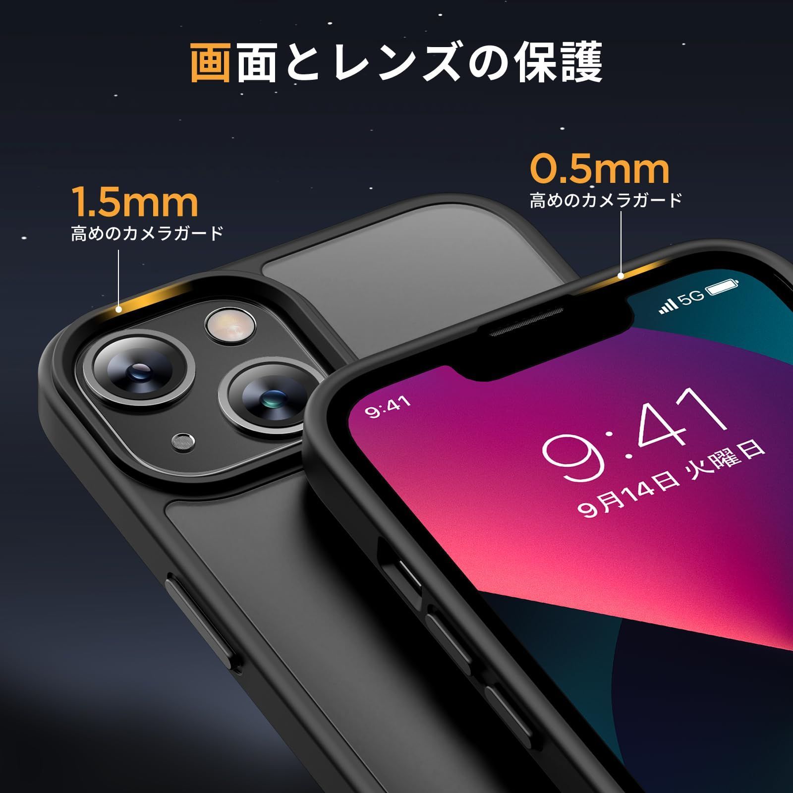 【保護力を高め、軽くて肌に優しいデザイン】アイホン13 ケースカメラフレームを1.5 mm高くして、カメラレンズを傷から守ります。携帯ケースの重さはわずか38 gで、負担がかからず、さらさらとした手触りは素の携帯よりも快適です。また、ナノ疎油コーティングを施しているため、指紋が付いても簡単に拭き取ることができます