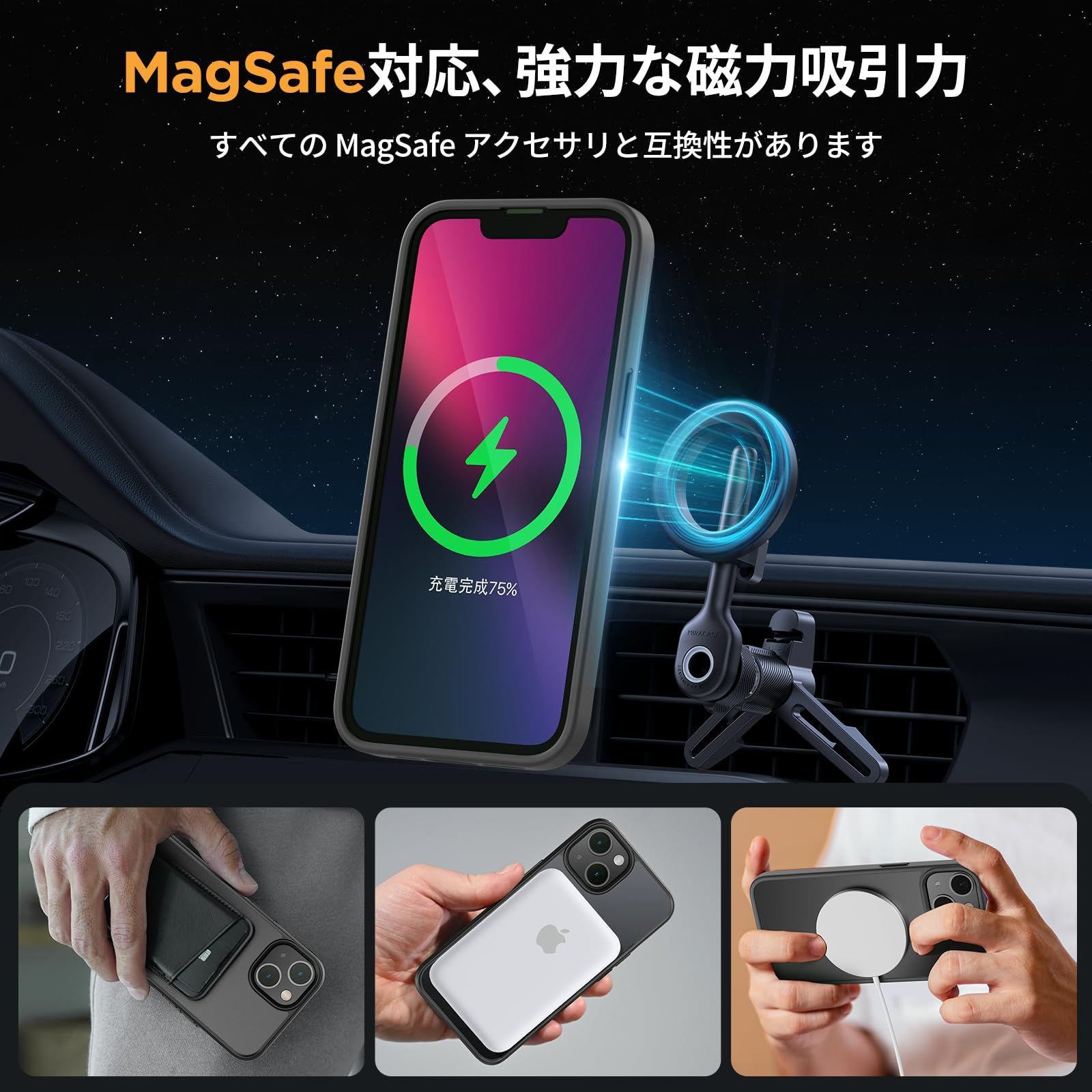 【MagSafe互換&磁力強化】スマホケース iphone 13にはN52磁石38個を内蔵し、磁力を60%強化。MagSafeスタンド/MagSafeカードホルダー/MagSafeワイヤレス充電器など、全てのMagSafeアクセサリーに強力吸着。外出先でも日常使いでも便利で安心な使い勝手を実現
