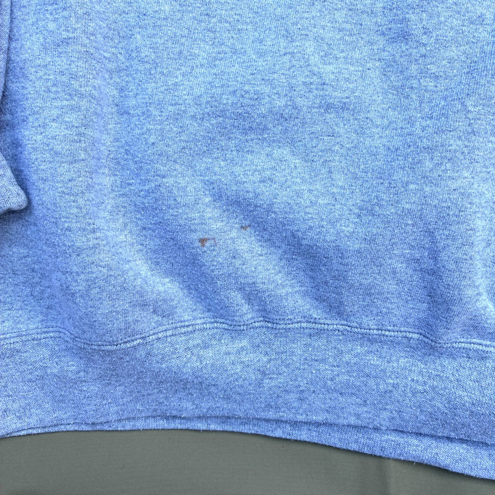 • 状態: フロント下部に小さなシミ(写真参照)がありますが、古着の味わいとして馴染んでおり、着用に支障はありません。生地は肉厚でしっかりしています。