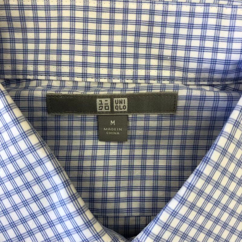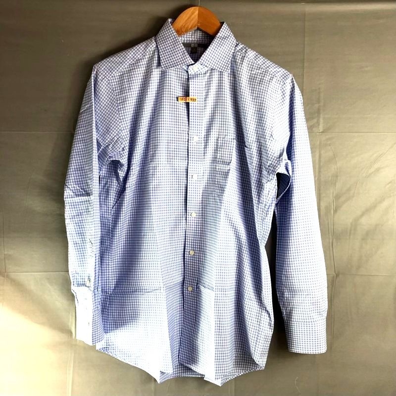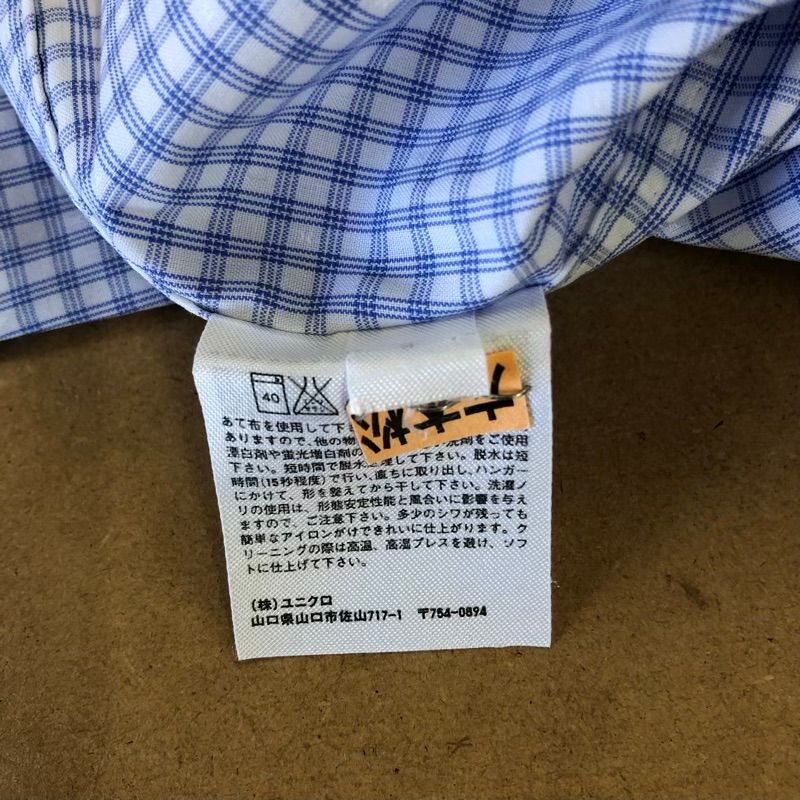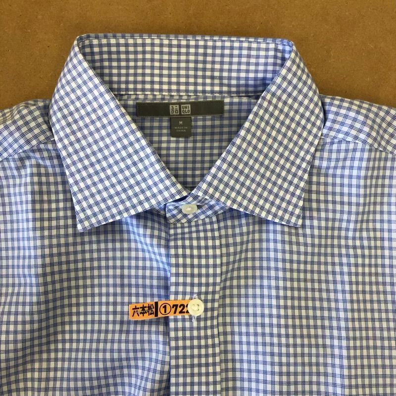 ユニクロ UNIQLO シャツ Yシャツ チェック コットン100% ホワイト系 ブルー系 Mサイズ 2025091000126