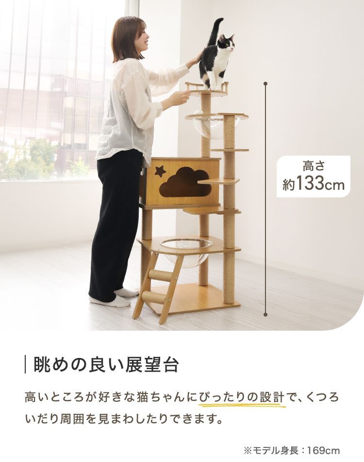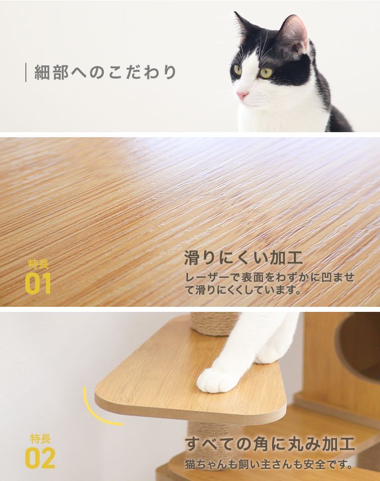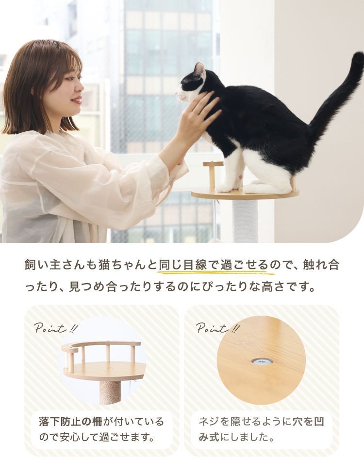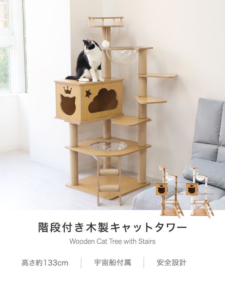 猫ちゃんにとっての毎日の快適さと心地よさを追求して設計された階段付き木製キャットタワーです。