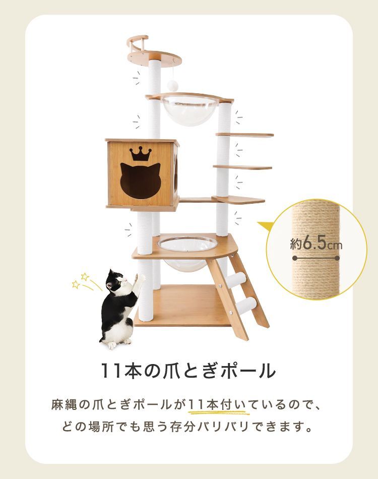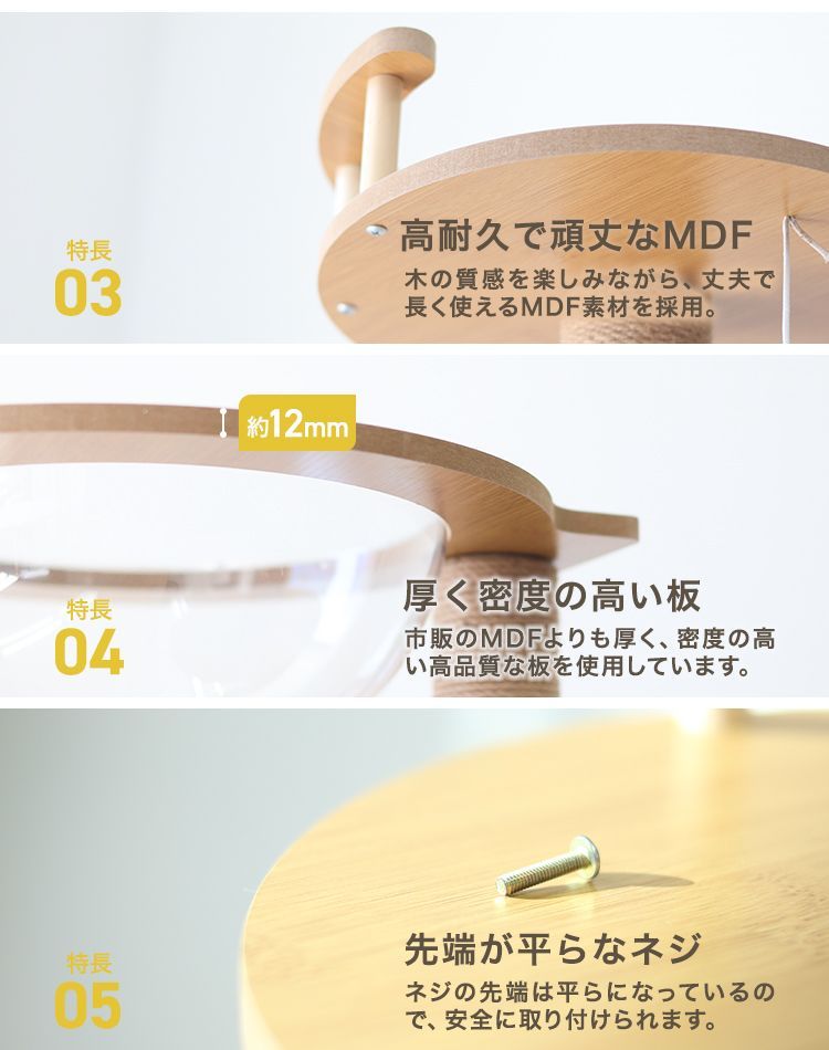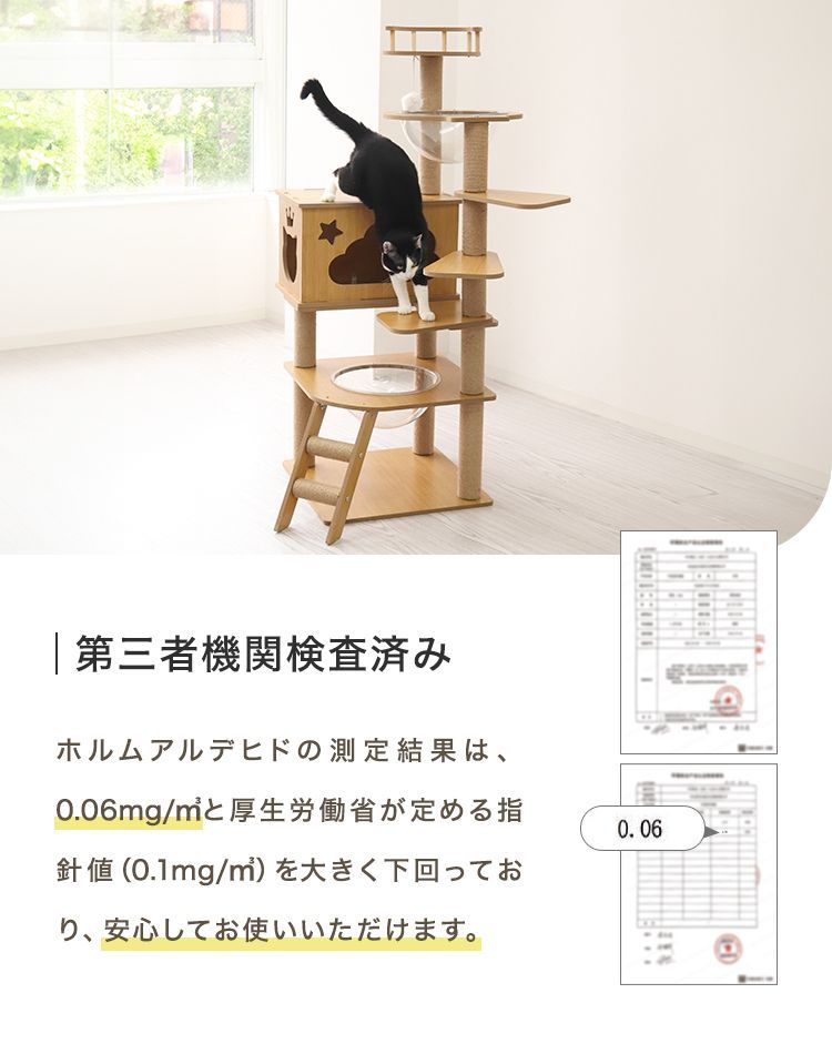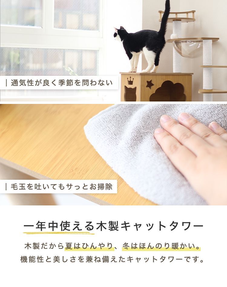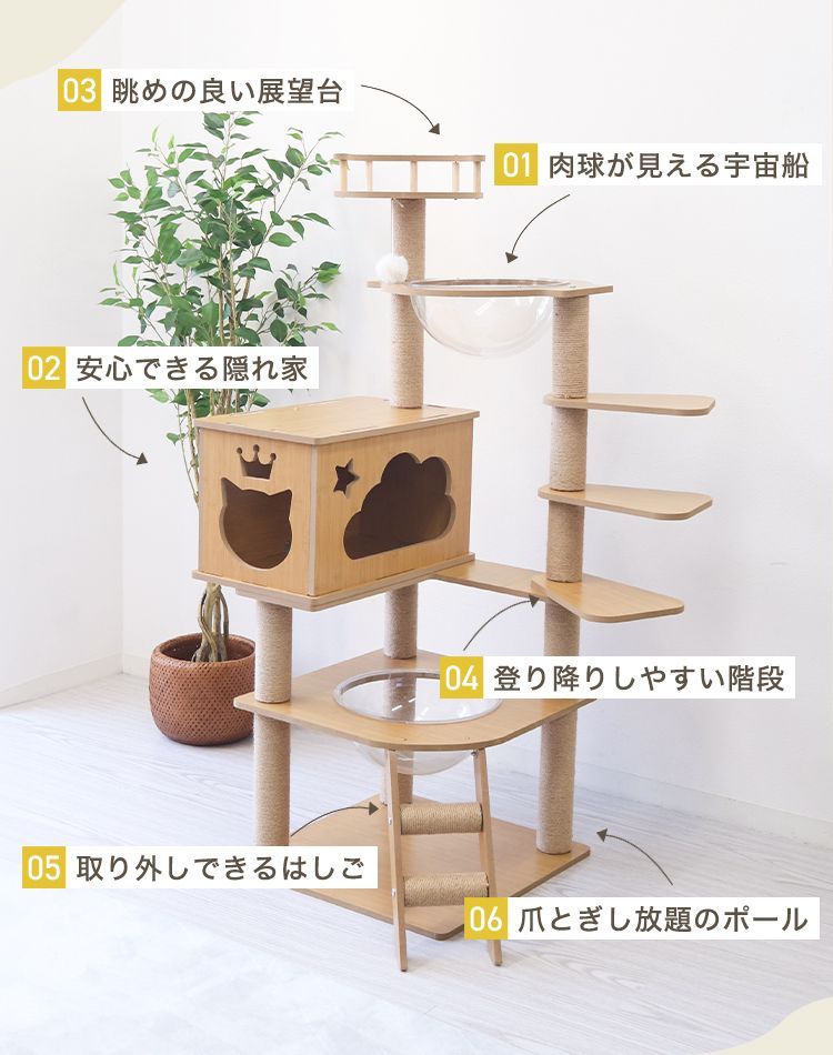 猫ちゃんにとっての毎日の快適さと心地よさを追求して設計された階段付き木製キャットタワーです。