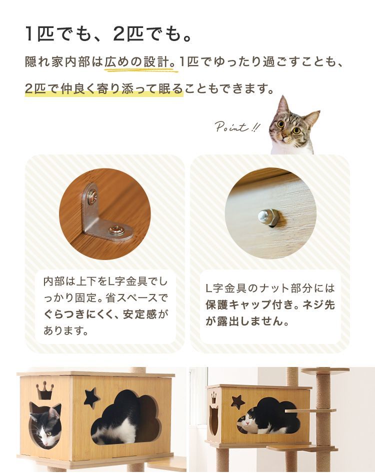 多頭飼いでもケンカの心配なし。それぞれが自分だけの安心できる場所で、ゆったりと過ごせます。