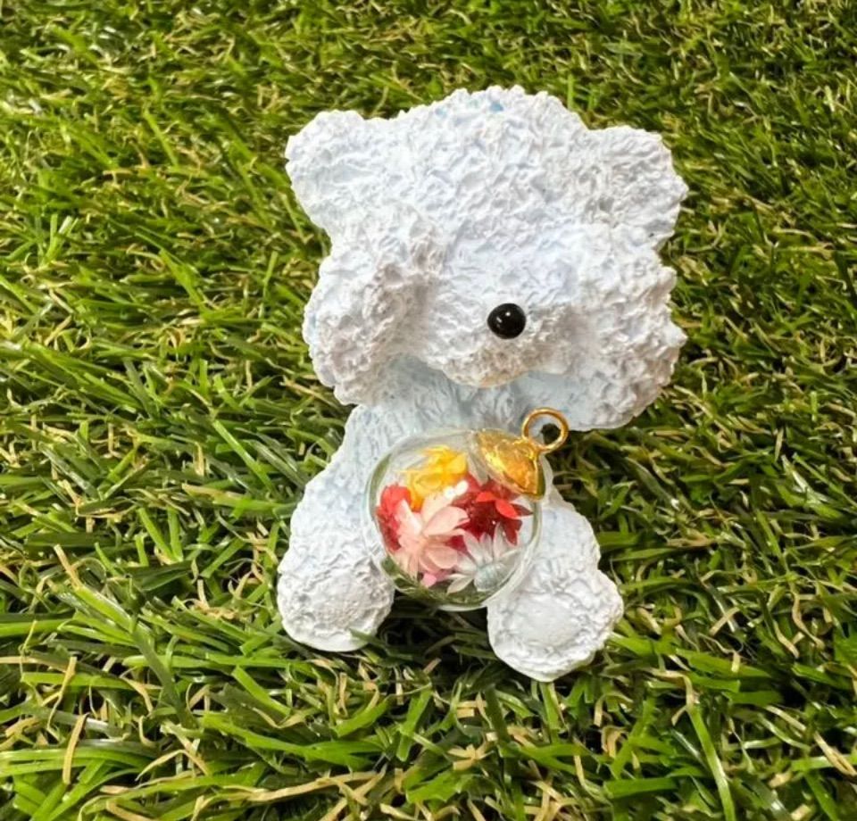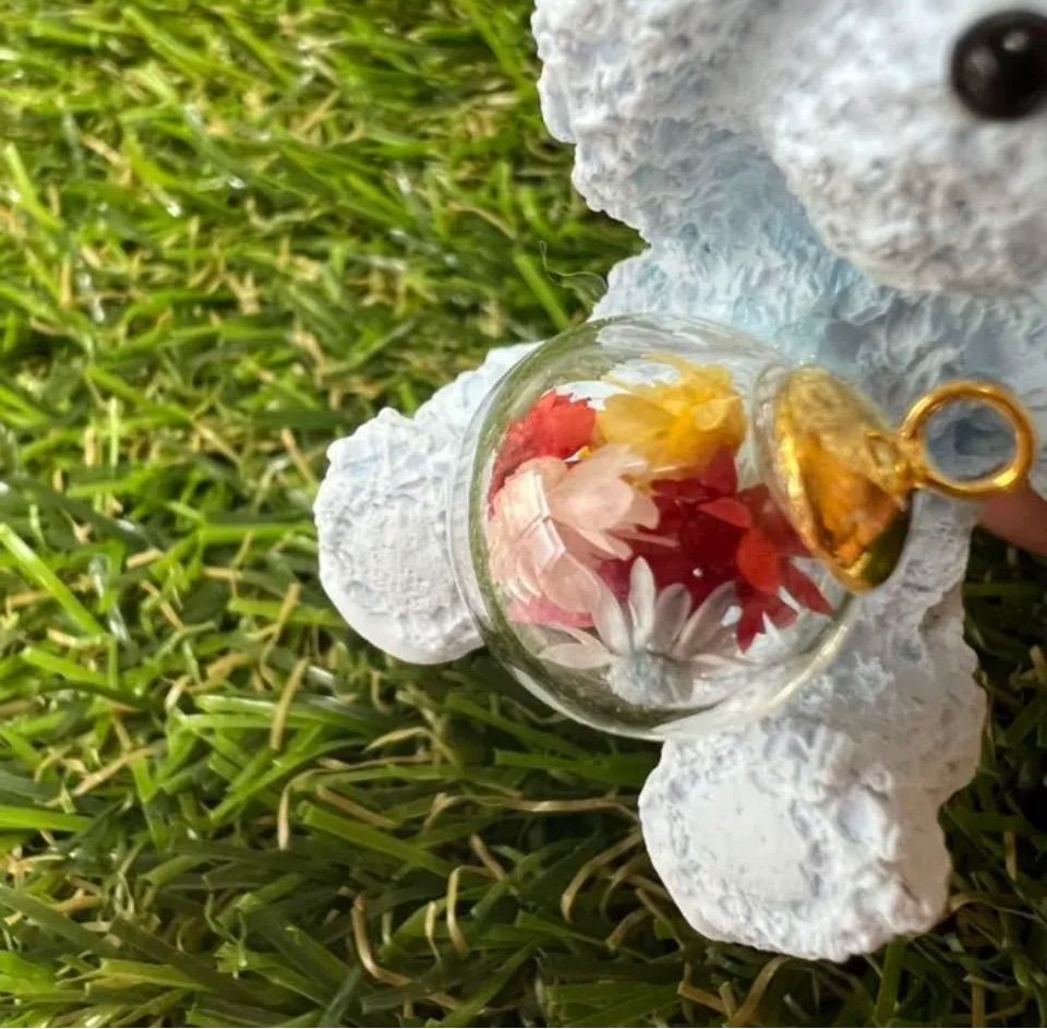 ブリザーブドフラワーのスターフラワーを5つ閉じ込めたガラスドームを持たせました(^0^)/