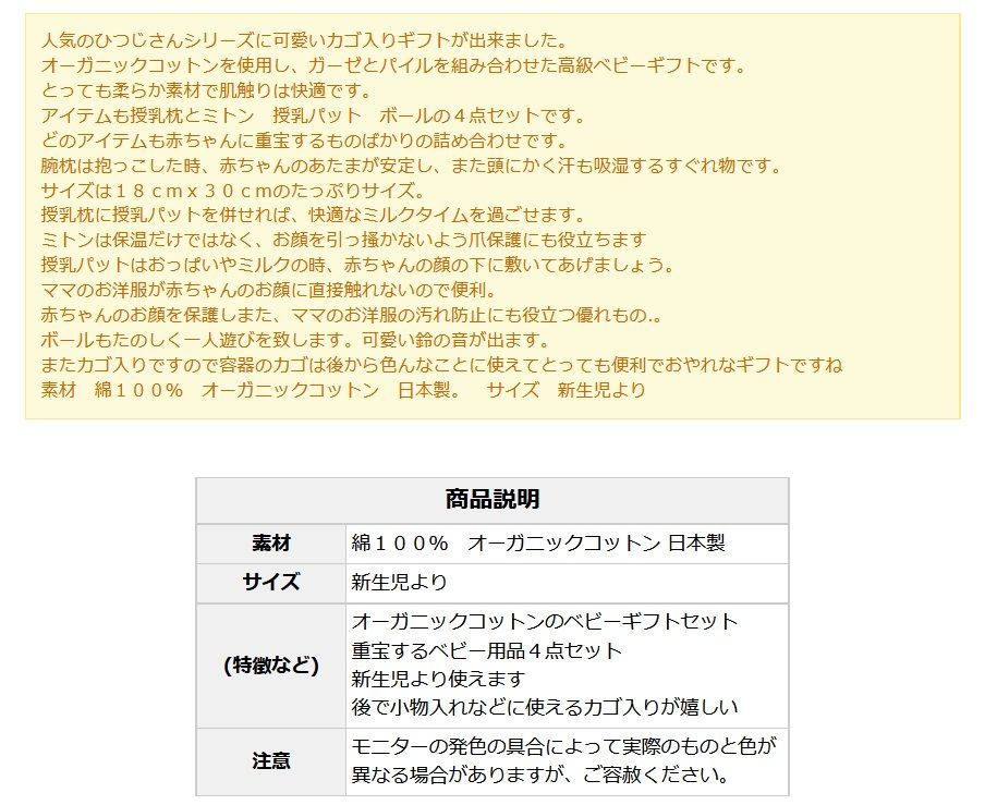 アイテムも授乳枕とミトン 授乳パット ボールの4点セットです。