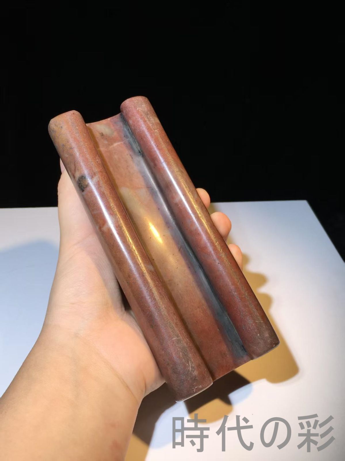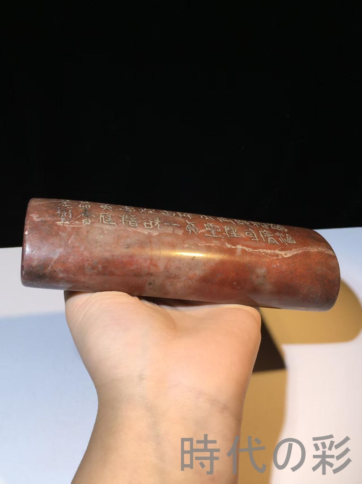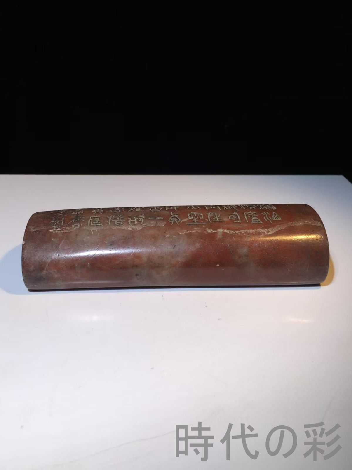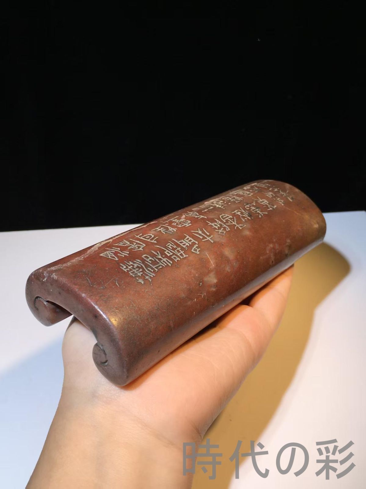 名家による旧蔵寿山石の鎮紙。石質堅硬で色合い柔らかく、書斎文房具としても美術品としても価値が高い一品です。