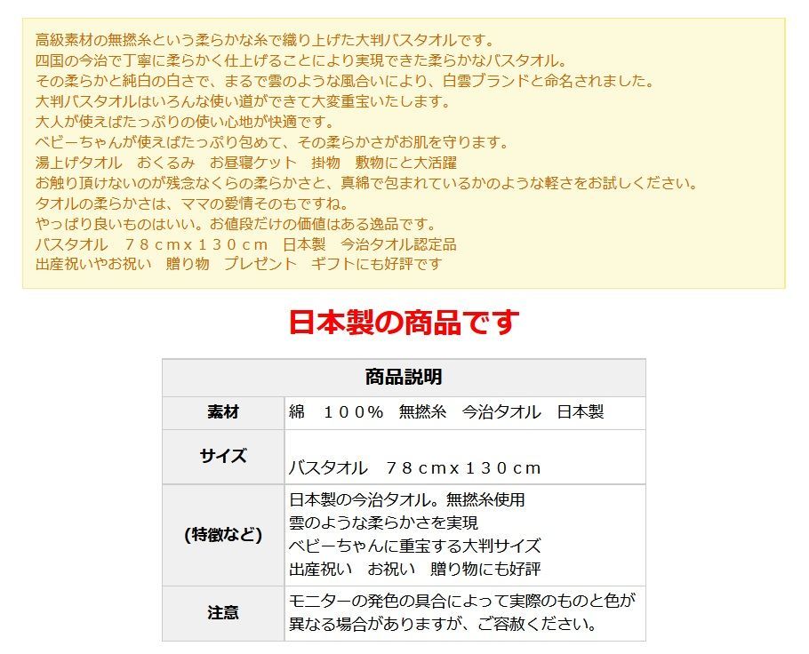 バスタオル 78cmx130cm 日本製 今治タオル認定品