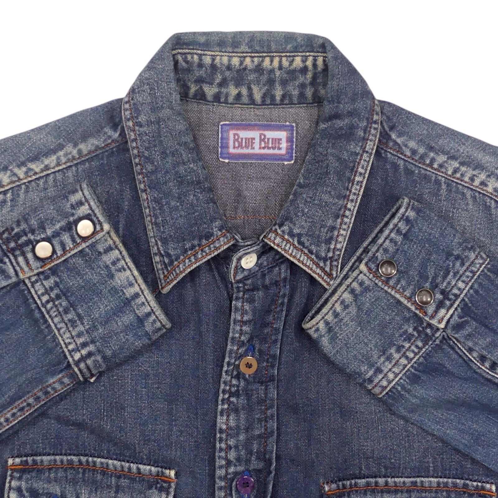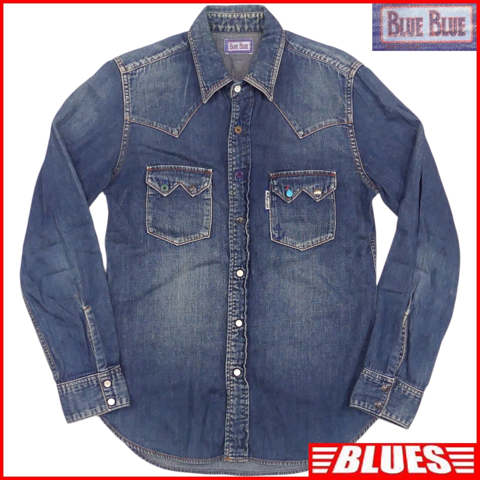 即決★BLUE BLUE★メンズ M ウエスタンシャツ ブルーブルー デニム ヴィンテージ調 刺繍 長袖 インディゴ