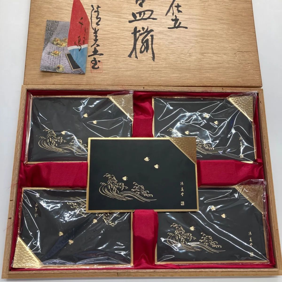 沈金仕立銘々皿揃 千鳥 5枚揃い に成ります。
