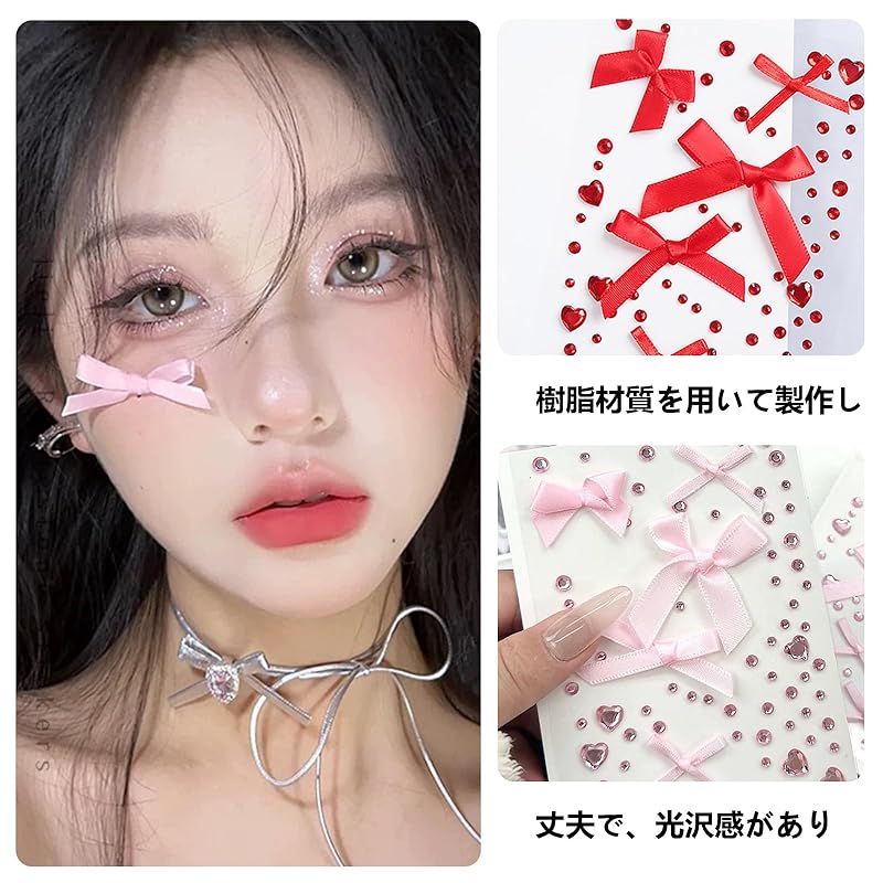 【ラインストーン シール】かわいいリボン、ハート、スタイリッシュなデザイン。ステージや写真撮影などの場面で、目や顔、体の様々な部分に輝きを。自由に組み合わせて好きなところに装飾できます、あなたのユニークな魅力を引き出し、他人と異なる個性を演出します。