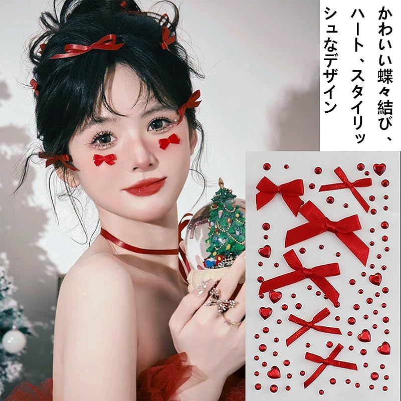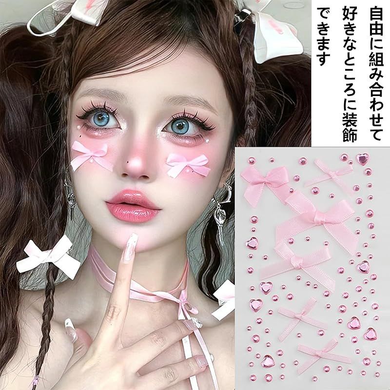 【ラインストーン シール】かわいい蝶々結び、ハート、スタイリッシュなデザイン。ステージや写真撮影などの場面で、目や顔、体の様々な部分に輝きを。自由に組み合わせて好きなところに装飾できます、あなたのユニークな魅力を引き出し、他人と異なる個性を演出します。