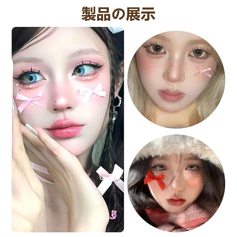 【はがして貼るだけ簡単】自己粘着性を持っており、接着剤を使う必要なく、(リボンは接着剤が必要です)、剥がして好きな場所に貼り付けるだけでオッケ。使いやすく、デザインに合わせて簡単に剥がしたり貼ったりすることができます。顔シール キラキラ、何度も繰り返し使用することができます。