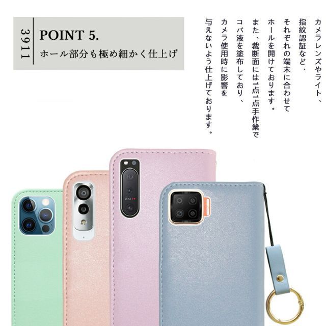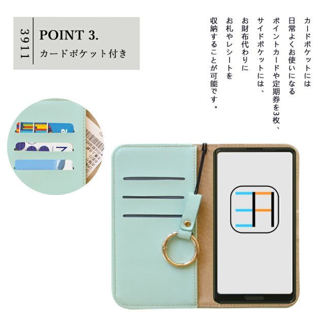 ・マグネット不使用なのでマグネット内蔵タイプの手帳型ケースより軽くてクレジットカードも磁気破損を気にせず入れて頂けます