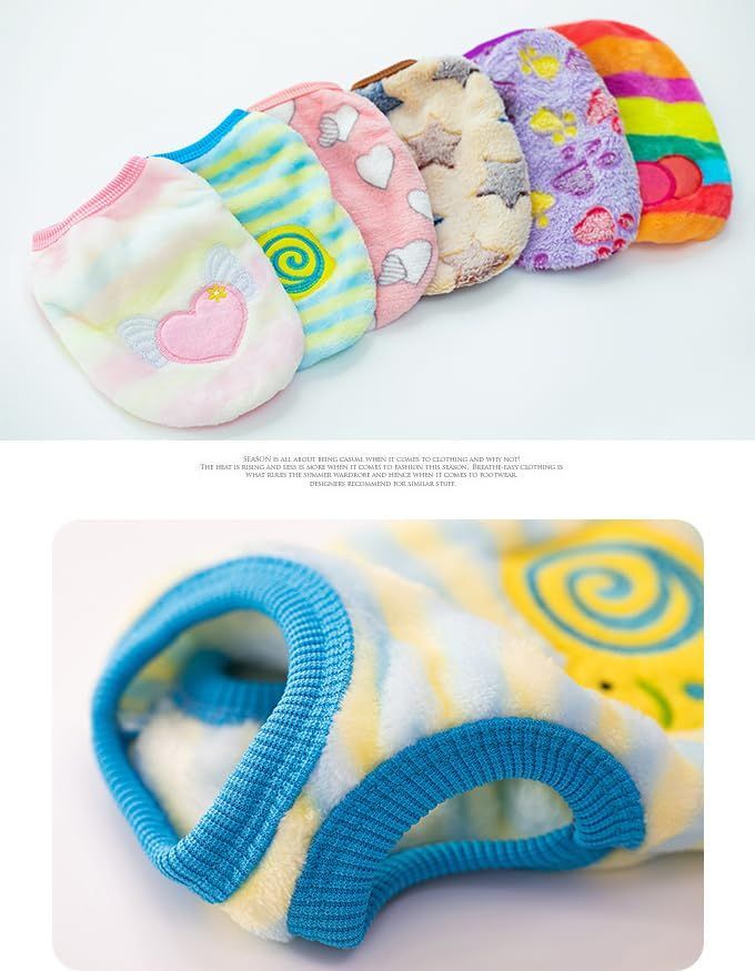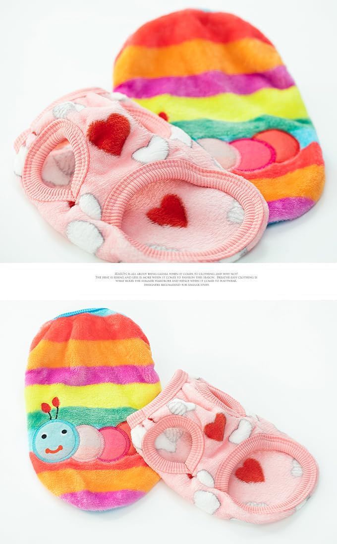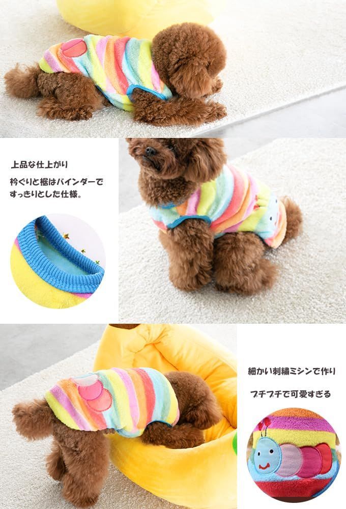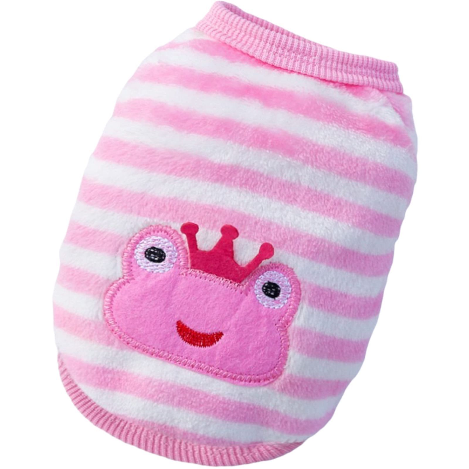 RIOSTUDIO 犬服 秋冬 パピーサイズ有 犬の服 秋 冬 子犬服 (XXS~XL) モコモコ ふわふわフリースベスト ノースリーブ タンクトップ パピー服 極小サイズ 犬 猫 防寒 暖かい (⑫ピンクボーダー×カエル,XXS)