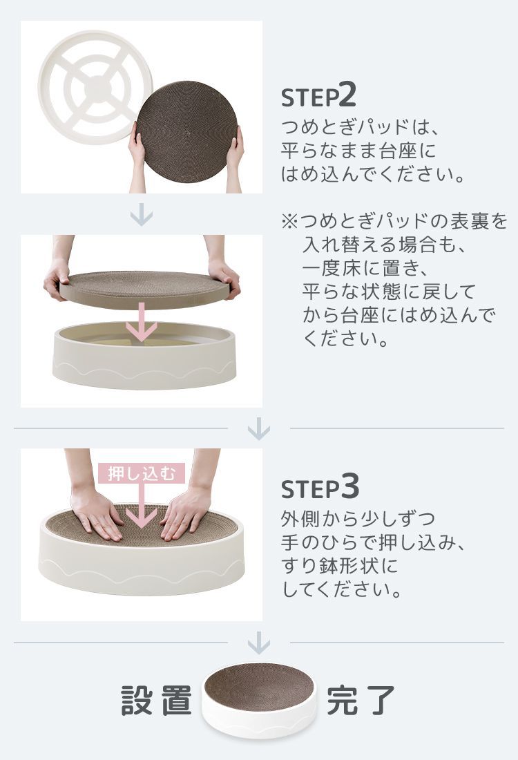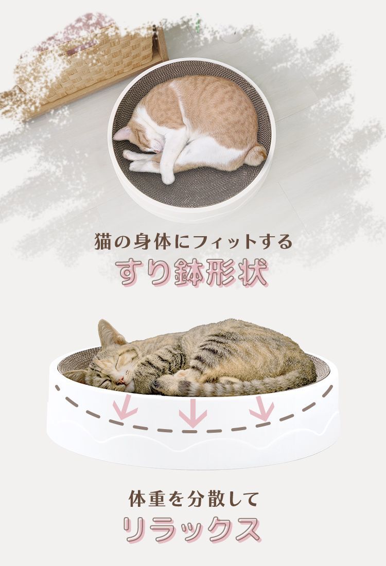 猫の体にフィットするすり鉢形状だから爪とぎしながらゴロ寝もできる!