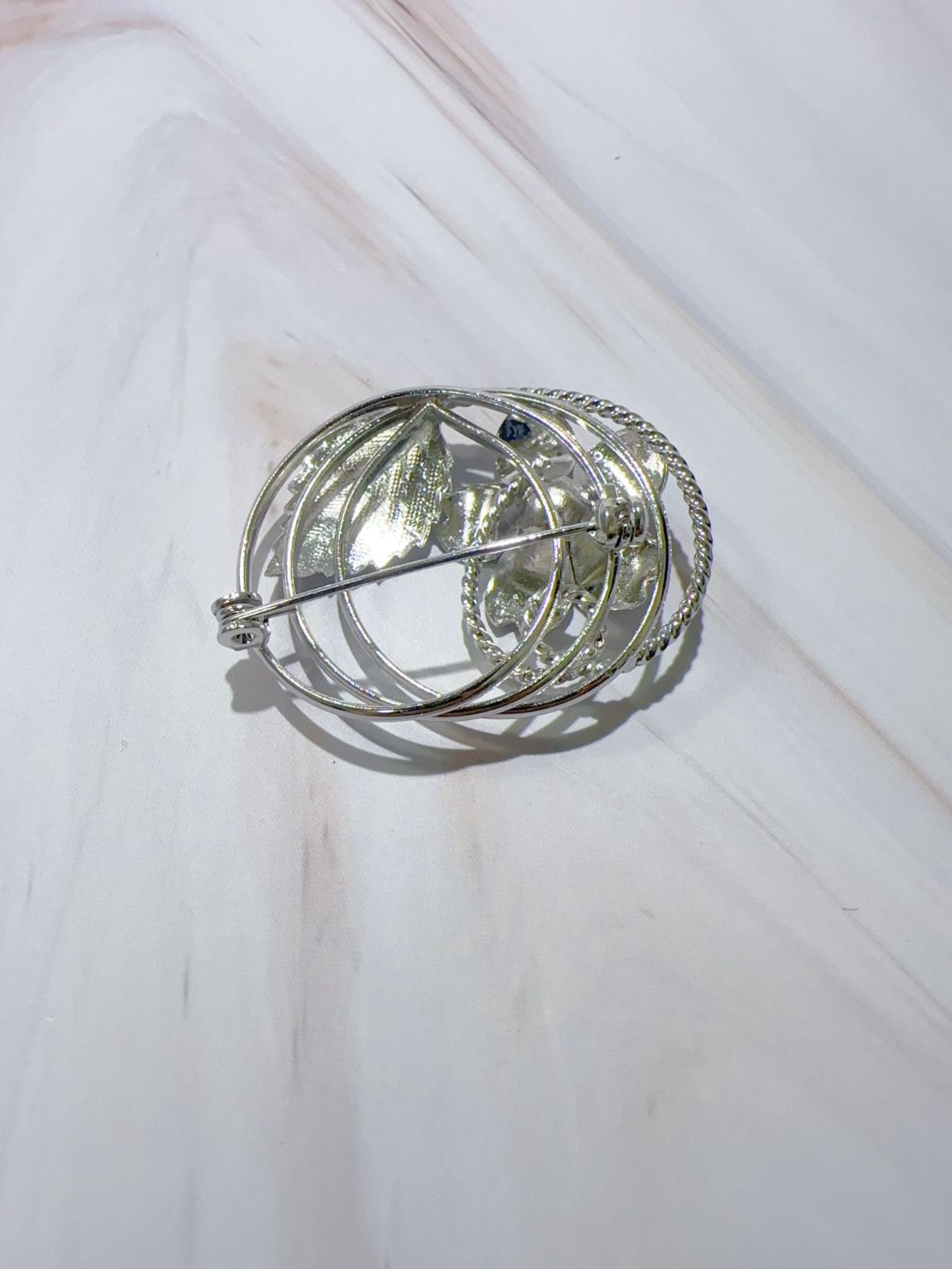繊細な彫り模様の花と葉が美しい、上品なシルバーカラーのブローチです。