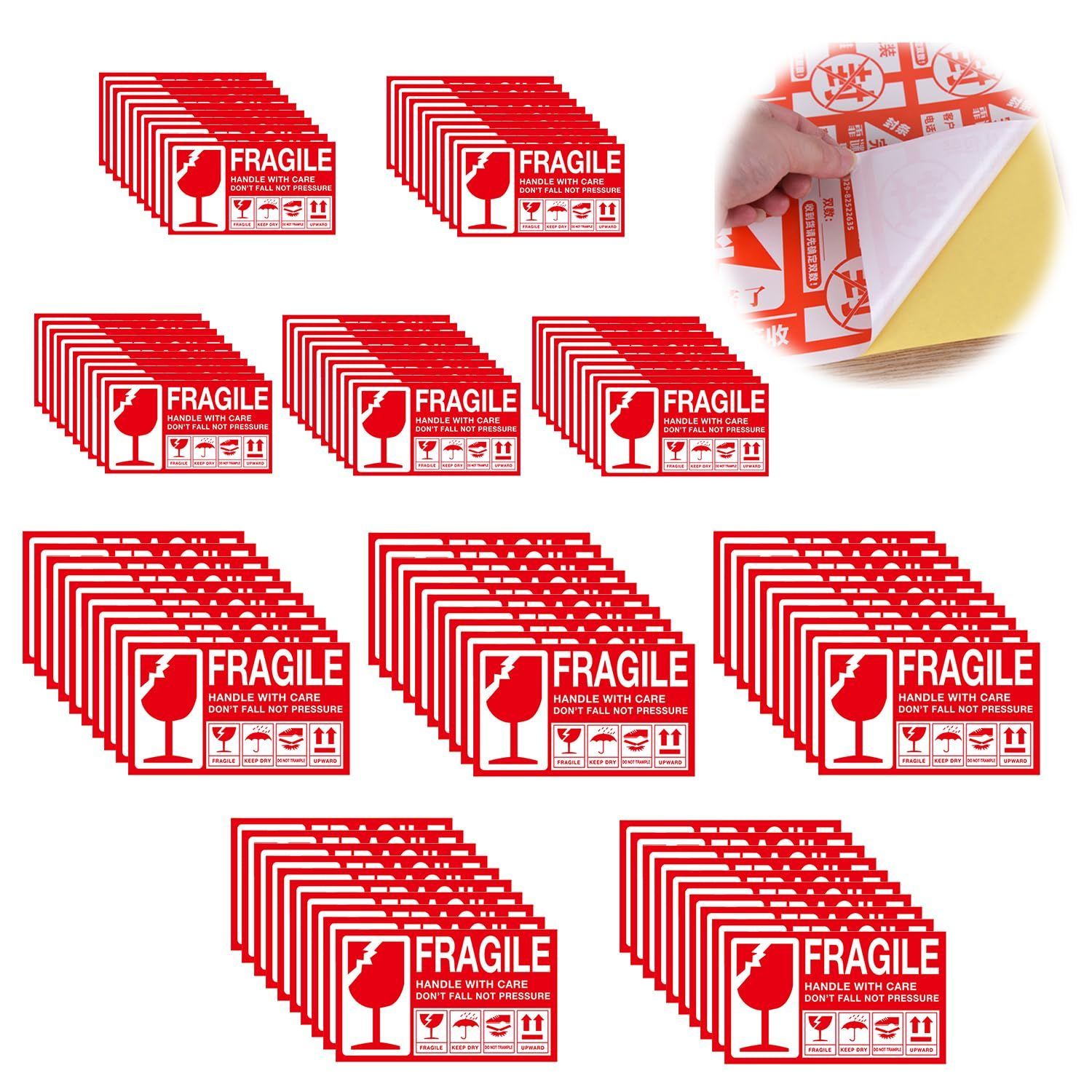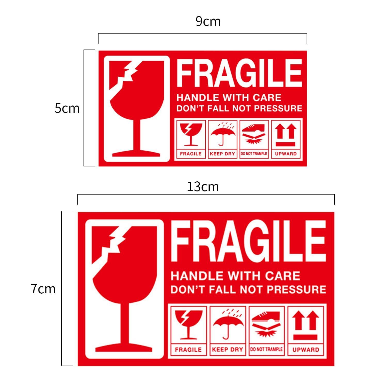 フラジール ステッカー 取扱注意 荷札シール 100枚セット 大容量 ワレモノ注意 シール 海外 国際輸送 梱包 発送 郵送 宅配 荷札シール 9×5cm/13×7cm