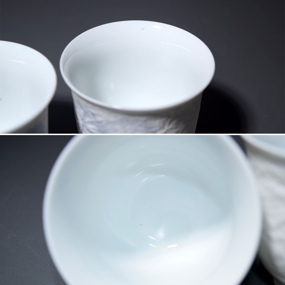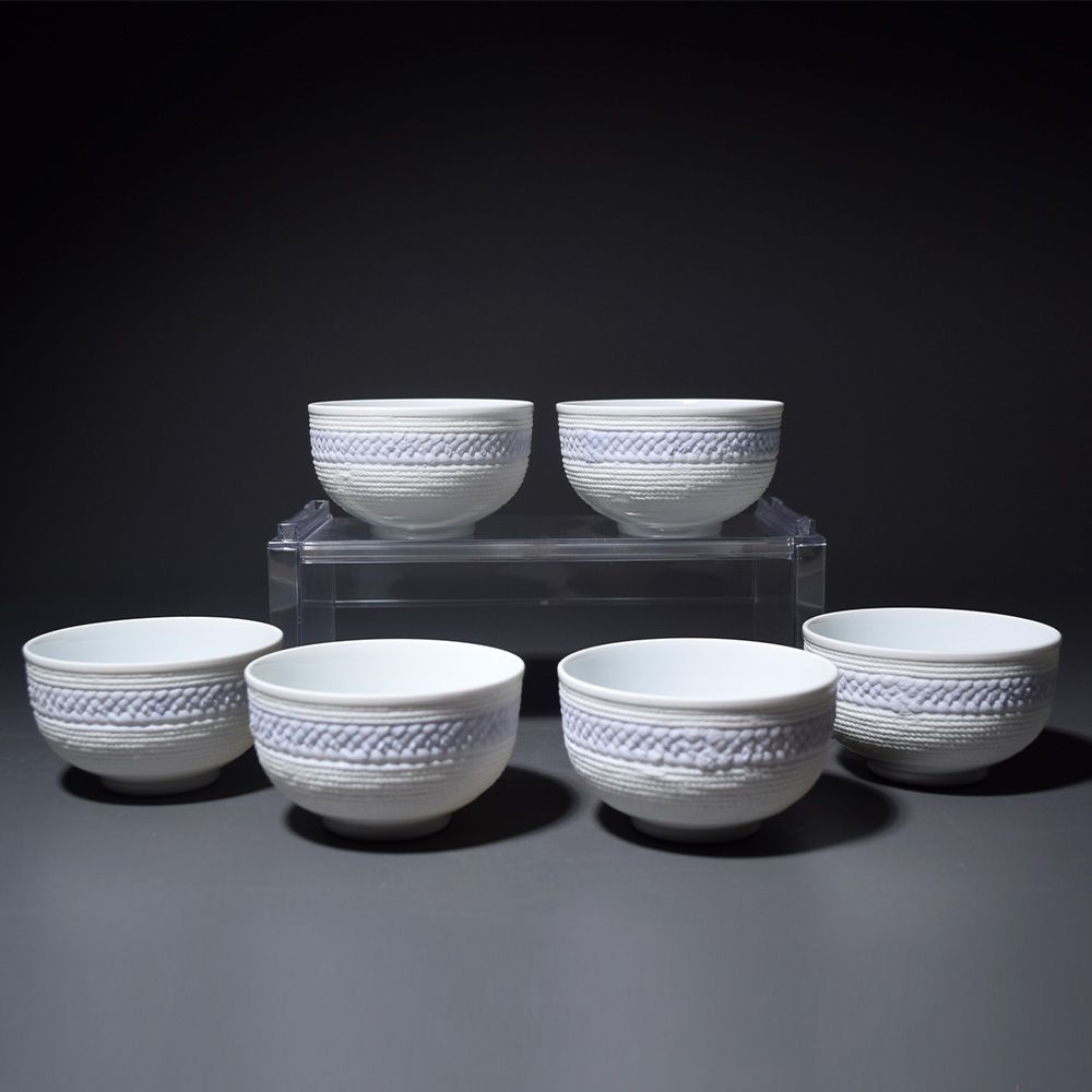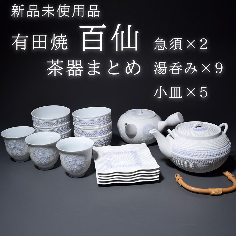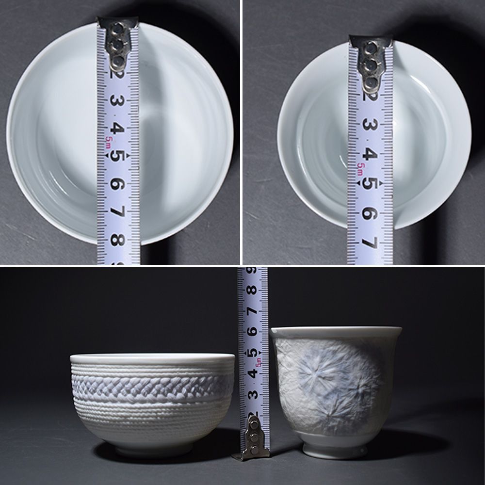 新品未使用品ではございますが、湯飲み並びに小皿に鉄粉やフリモノ、ピンホール、釉薬が一部乗っていないものがございます。