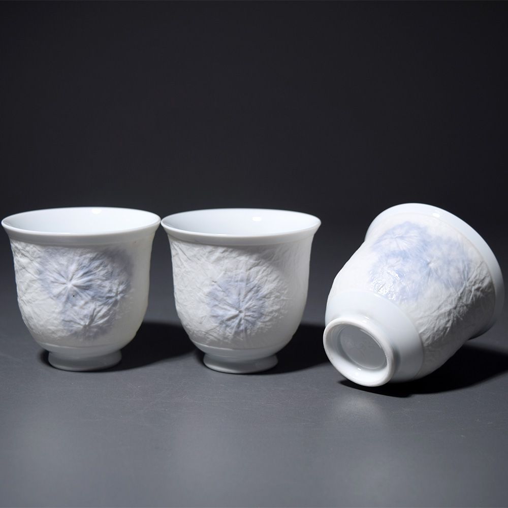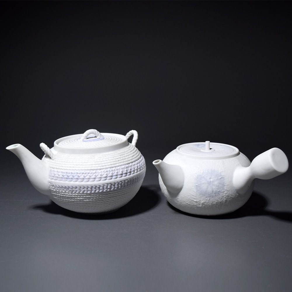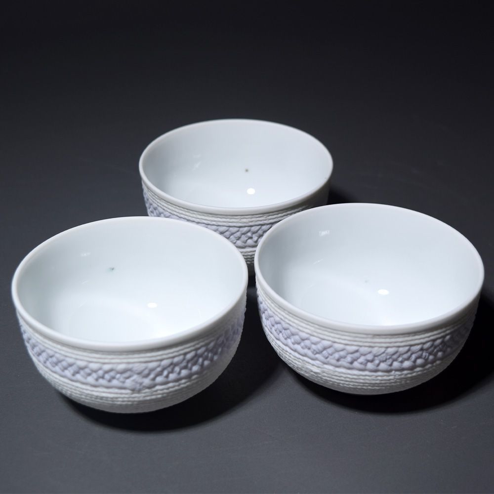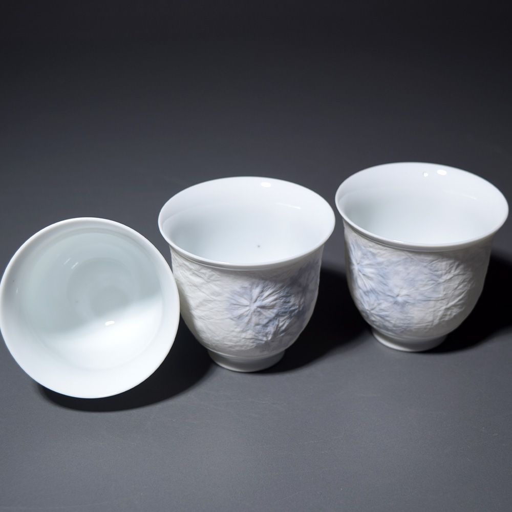 新品未使用品ではございますが、湯飲み並びに小皿に鉄粉やフリモノ、ピンホール、釉薬が一部乗っていないものがございます。