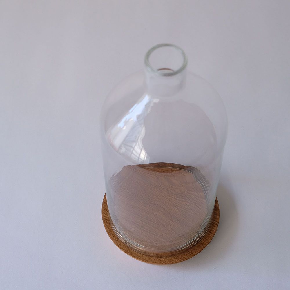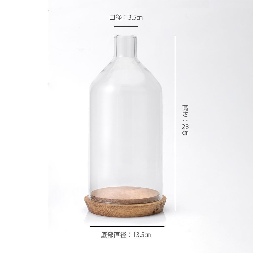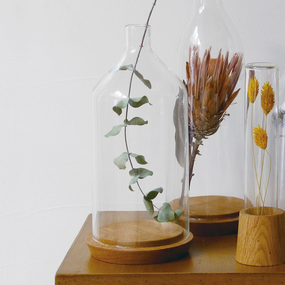 ボトル型のディスプレイドームは、逆さまにしたドライフラワーも茎の部分を逃がしてバランス良くディスプレイできます。