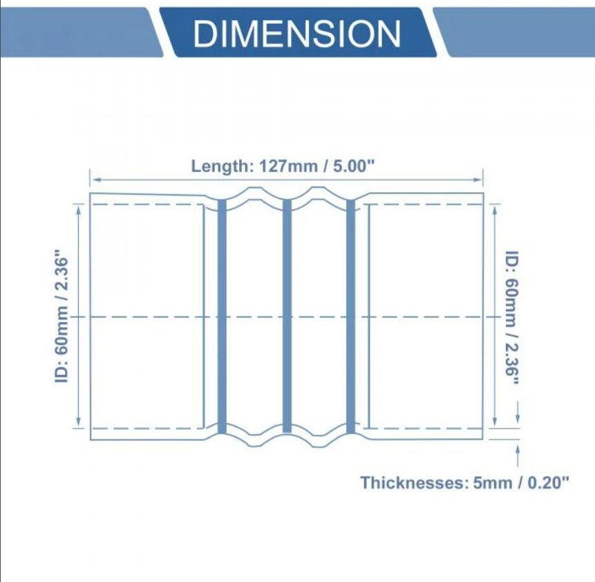【属性1】[サイズ] 内径: 60mm / 2.36", 長さ: 127mm / 5.00", 厚さ: 5mm / 0.20", ハンプ数: 1.