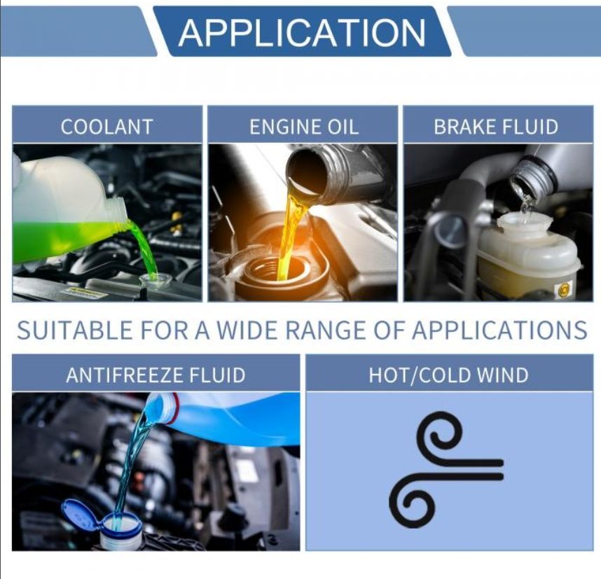【属性3】[用途] クーラント、エンジンオイル、ブレーキフルード、アンチフリーズフルード、暖房/冷房風などに適用されます。