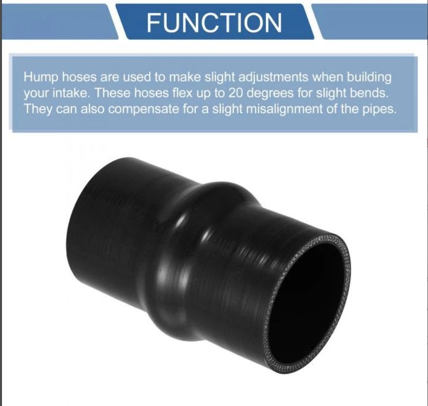 【属性4】[機能] ハンプホースはインテークを構築する際にわずかな調整を行うために使用されます。これらのホースはわずかな曲がりに対して最大20度までフレックスします。また、パイプのわずかなずれにも対応できます。