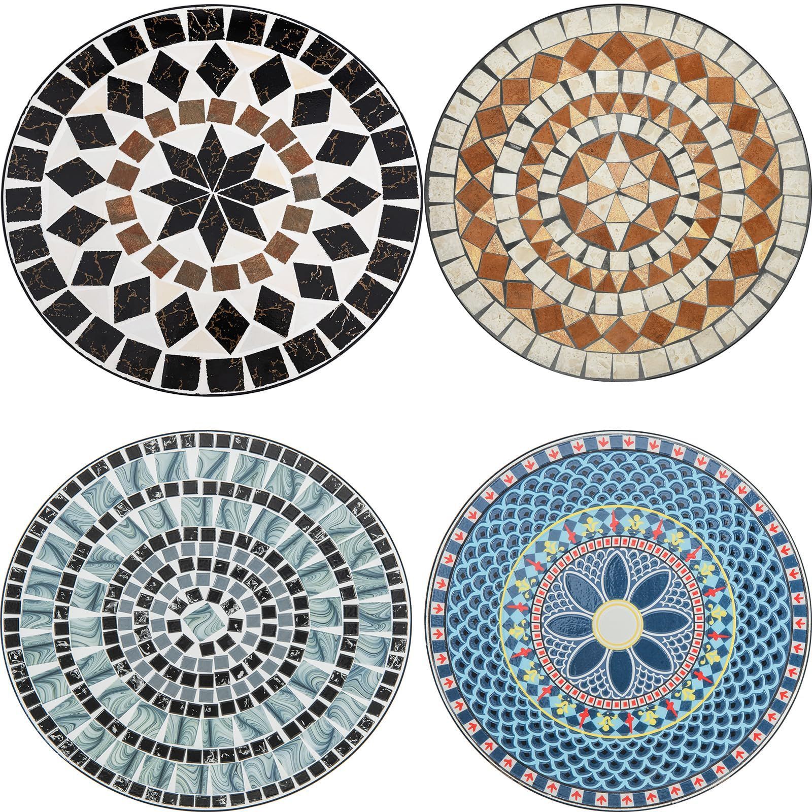 【魅力的なモザイクデザイン】それぞれのタイルが織りなす、クラシックでエレガントな円形パターン。色と質感の美しさが、和風・洋風問わず、どんな空間にも上品なアクセントを加えます。ガーデンやベランダ、リビングの一角に置くだけで、おしゃれな雰囲気に。