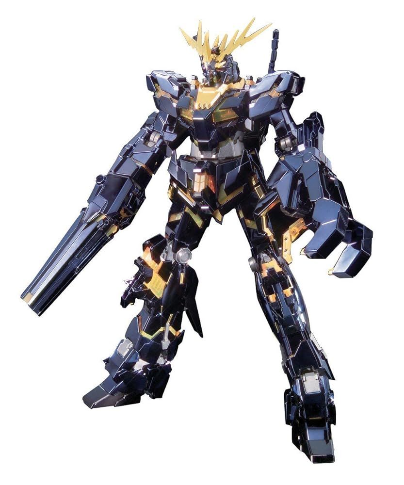 「商品情報」機動戦士ガンダムUC episode4のラストシーンで、ついにその姿を現した「黒いユニコーン」バンシィが、MGよりチタニウムフィニッシュバージョンで登場。チタニウムフィニッシュの輝きに合う、メタリック調の水転写式デカールが付属!ユニコーンならではの変形機構である、ユニコーンモードからデストロイモードへの変身も完全再現。金色のサイコフレーム部には特殊素材を使用。ブラックライトで照らすとUV発光。左手のアームド・アーマーVNは、展開ギミックを搭載。ビーム・トンファーも再現可能!右手のアームド・アーマーBSは、展開のほか、ビーム発射孔可動ギミックを搭載。