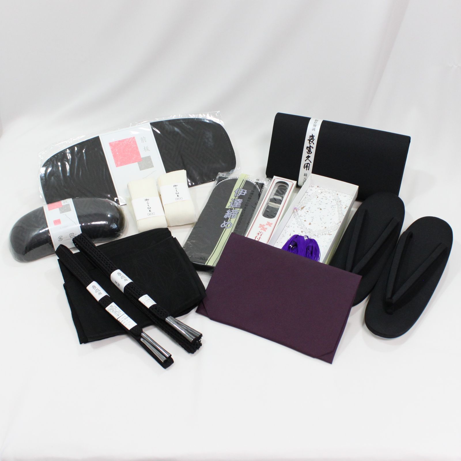 念珠、前板、伊達締め、帯揚げ、帯枕、帯締め