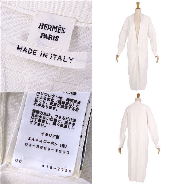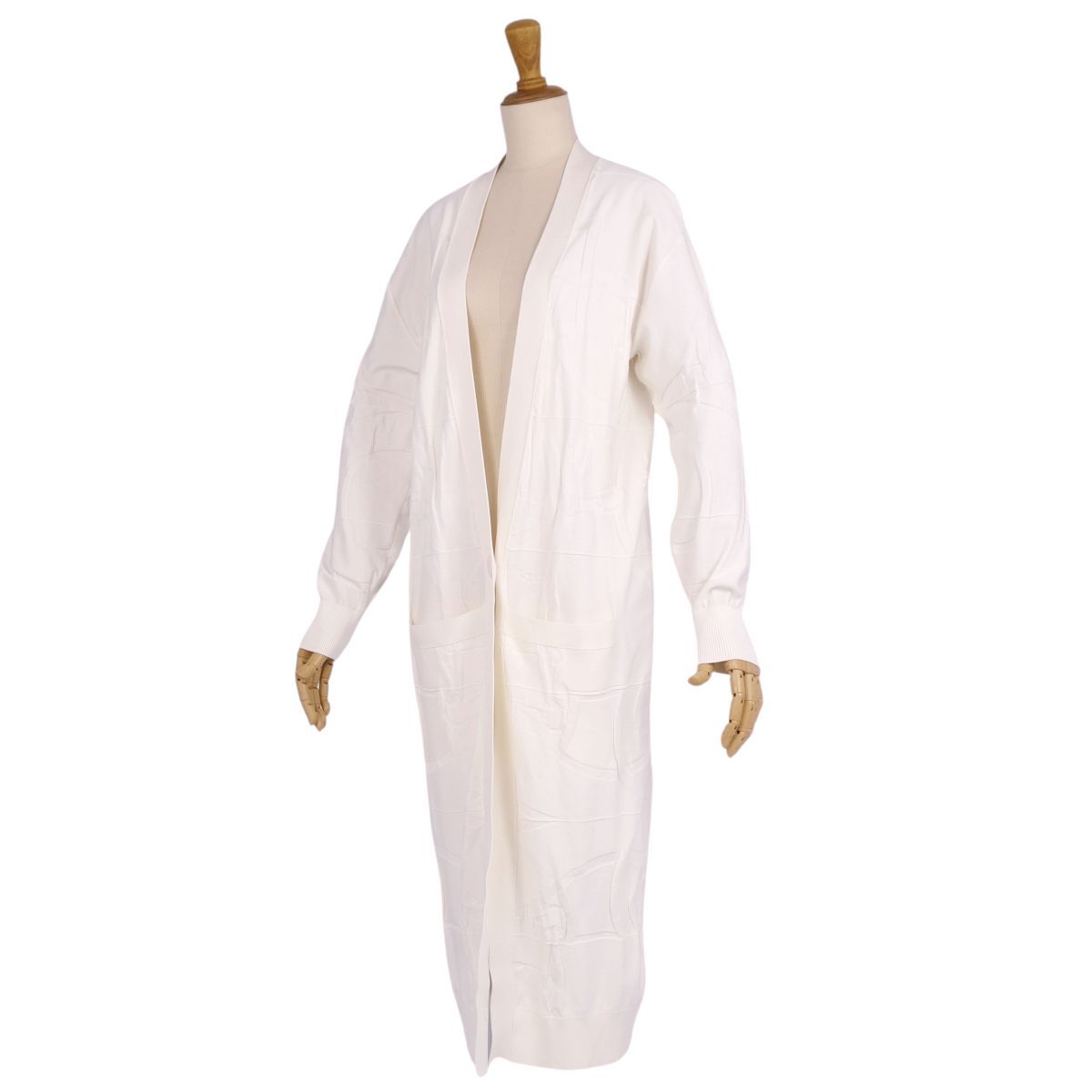 極美品 エルメス HERMES カーディガン 21SS ロングカーディガン 総柄 ニット シルク コットン トップス 36(S) ホワイト
