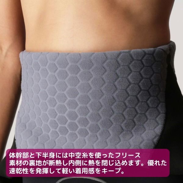 中空糸を使ったフリース素材の裏地が水分を逃し、内側に熱を閉じ込めます