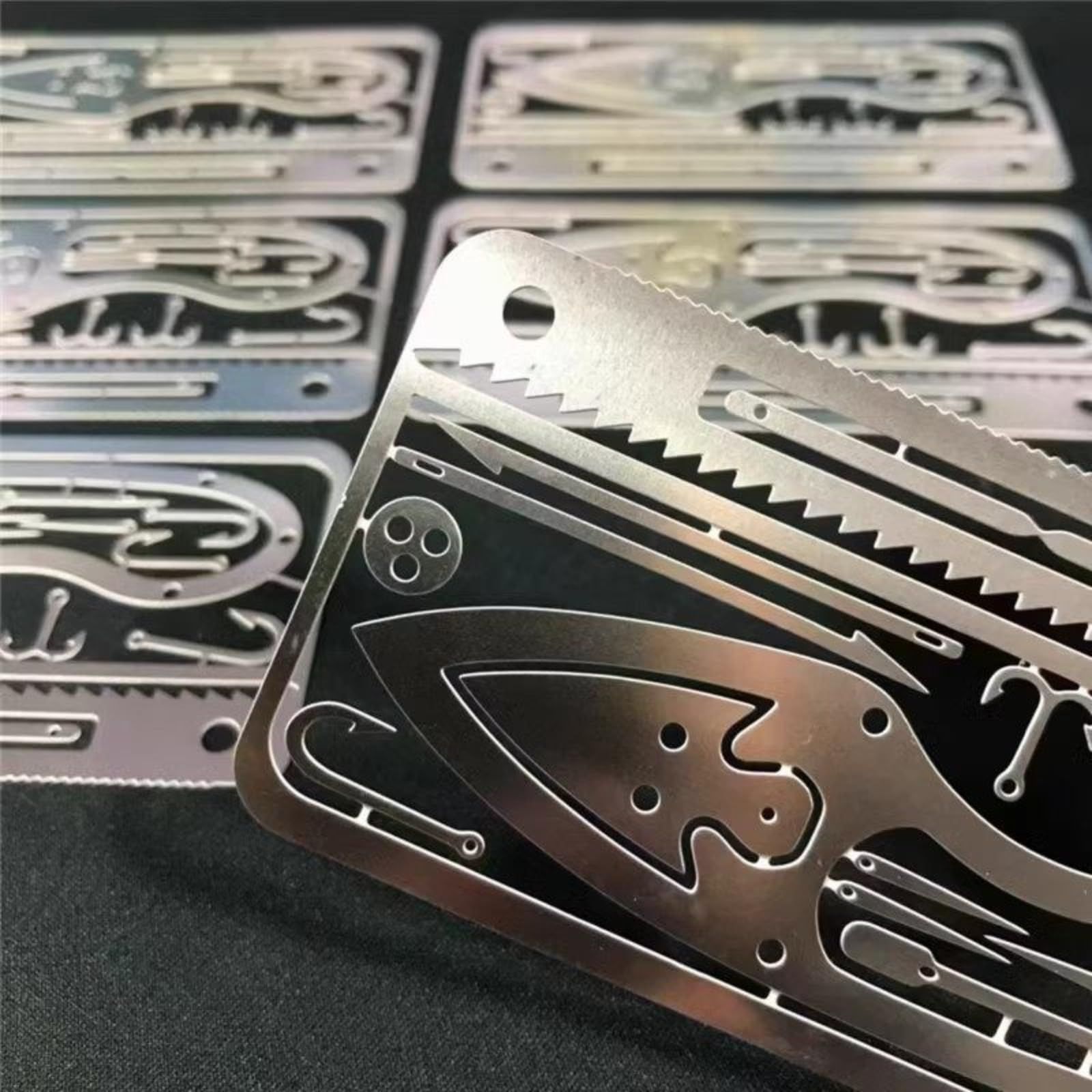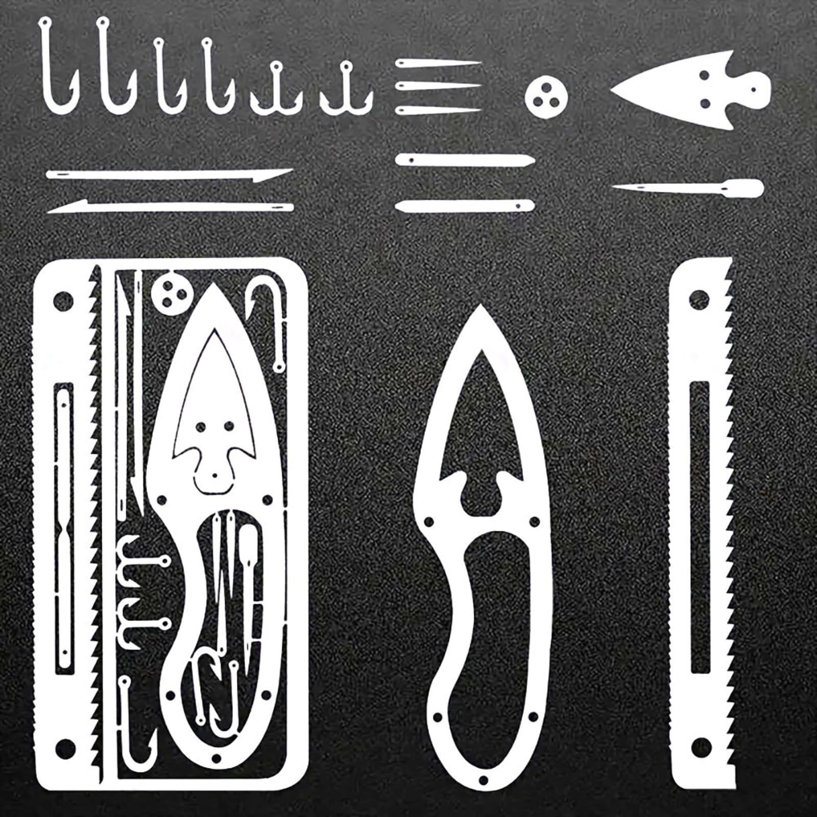 You2Bnology サバイバルカード マルチツール カード ステンレス鋼 釣り針カード 耐腐食 ポータブルアウトドアサバイバルツールカード 多機能 小型 カード型 サバイバルツール 戦術ツールキャンプツールカード キャンプ・ハイキング・釣り・狩猟・緊急訓練 (17, シルバー)