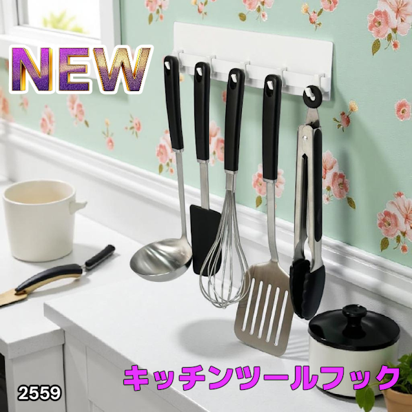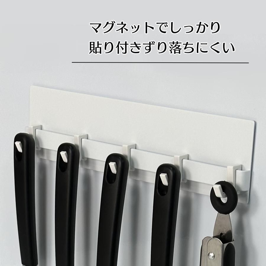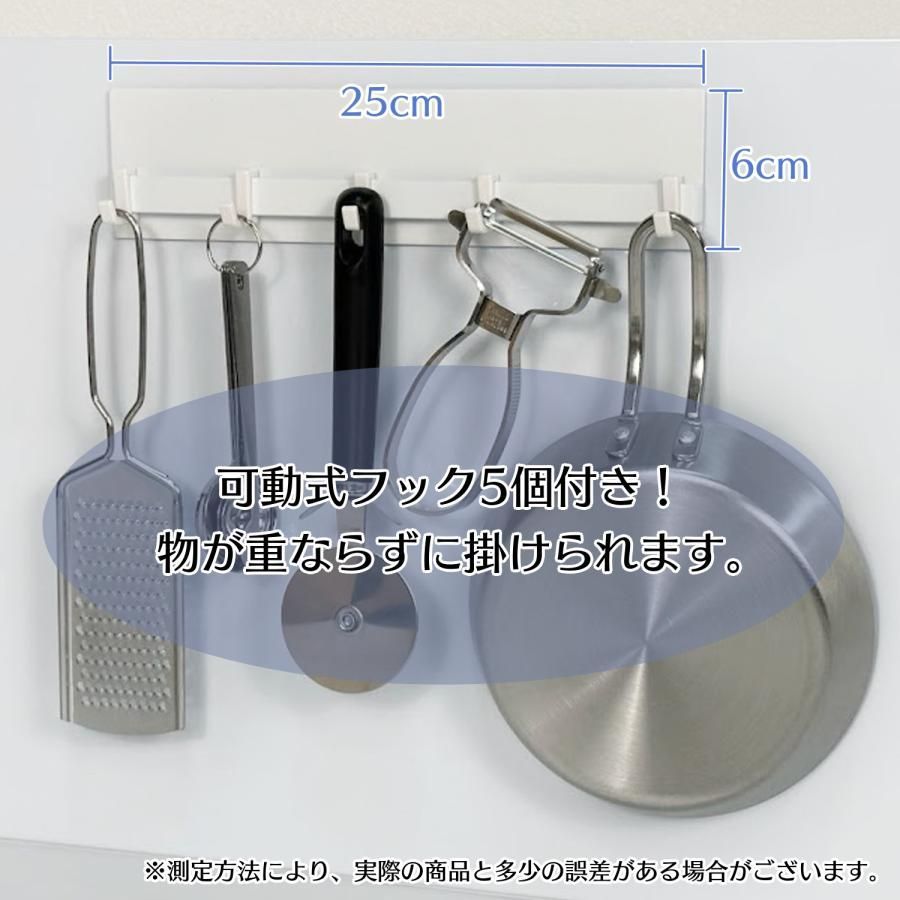 フックは可動式なのでキッチンツールを重なりません。収納する物に合わせてフックの位置を調整できます。