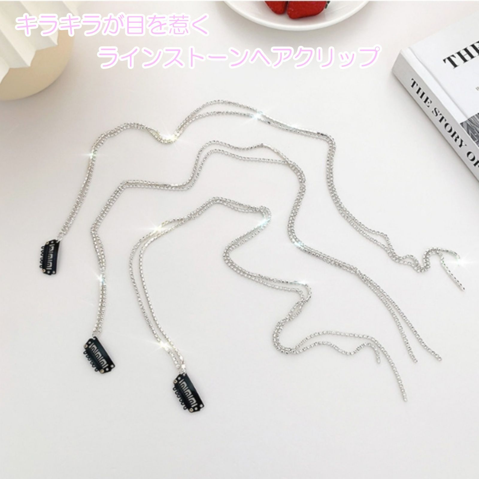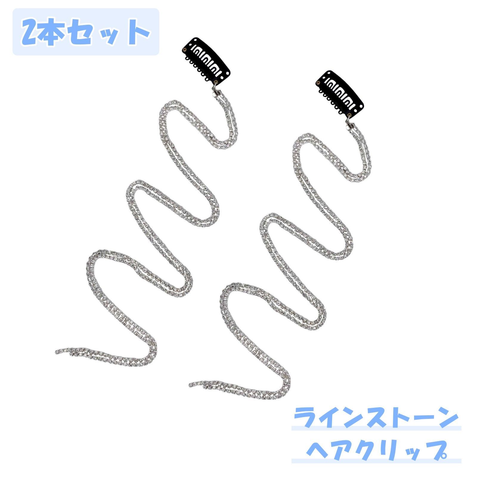 キラキラなラインストーンのチェーンが目を惹くヘアクリップです。