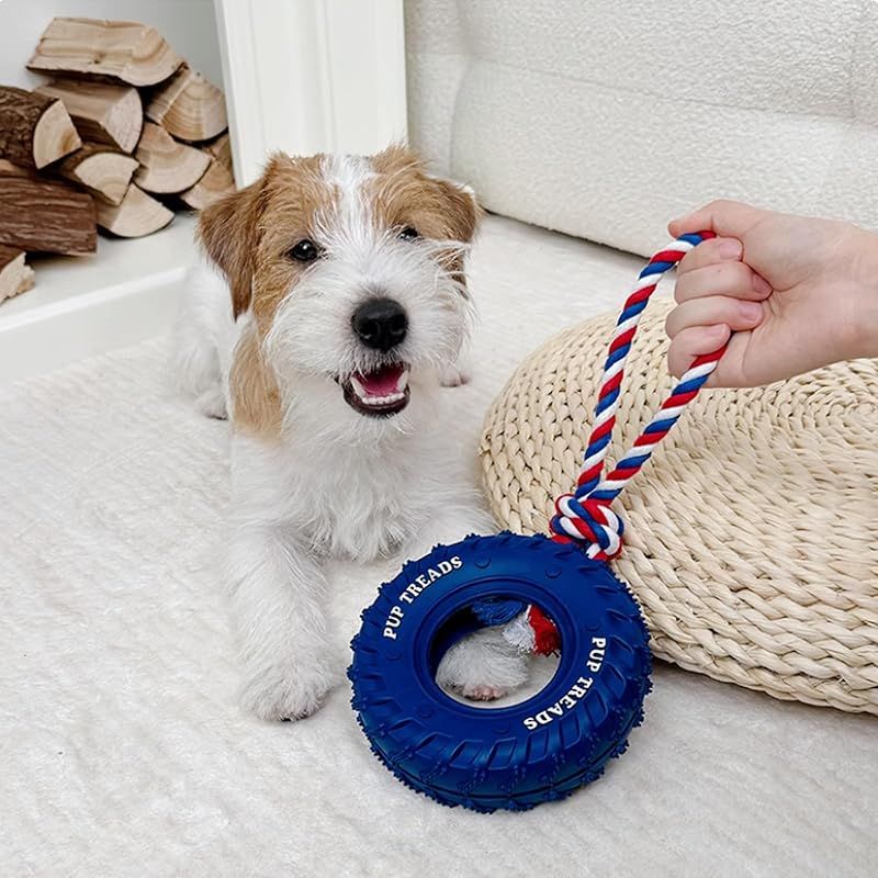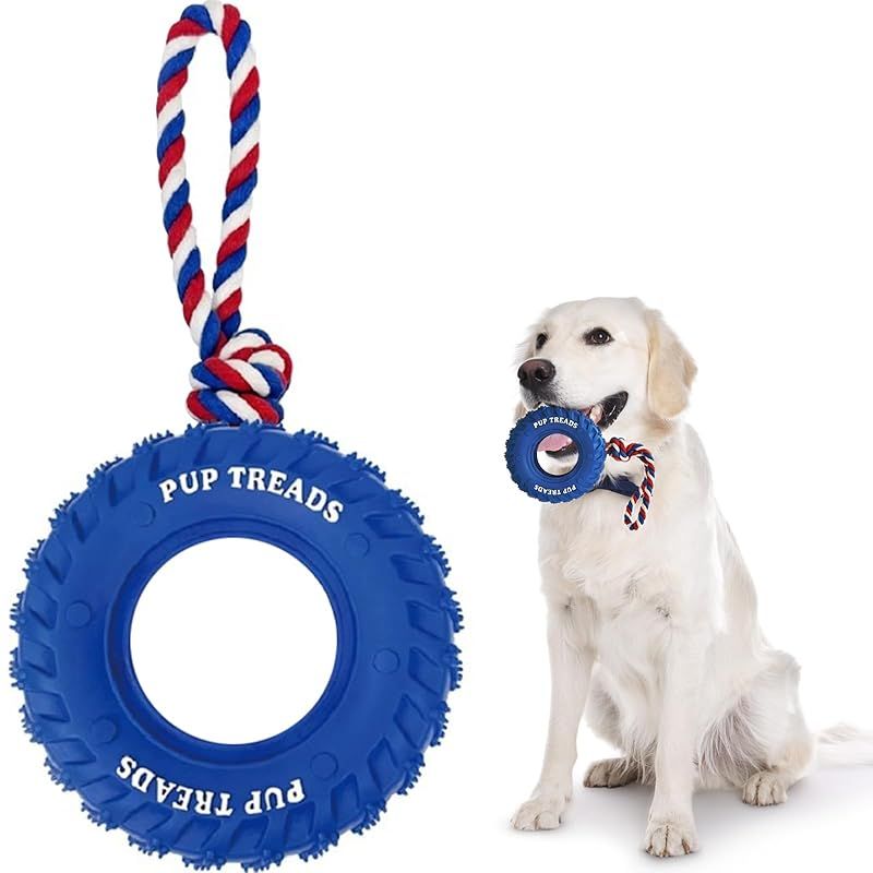 【商品サイズ】犬 おもちゃロープ長さ:19cm、タイヤ直径:16cm、タイヤ厚さ:5cm、重量約292g
