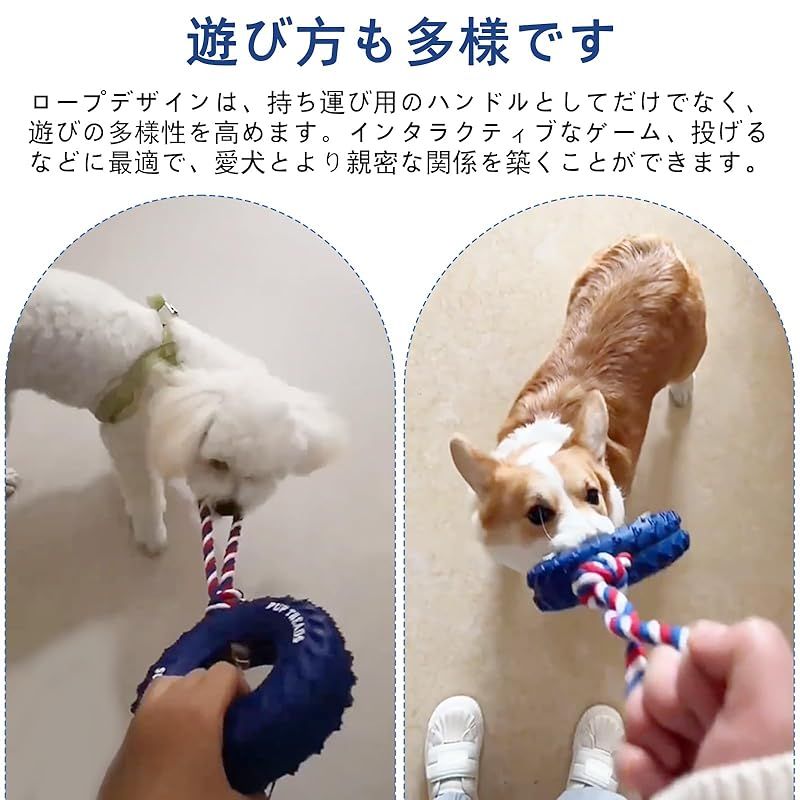 【製品材質】犬の知育玩具は高品質のゴム材料と綿ロープで作られています。比較的高い硬度を持ち、硬さと軟らかさが適度で、異臭がなく、噛みやすく引っ張りにも強く、遊び方も多様です。